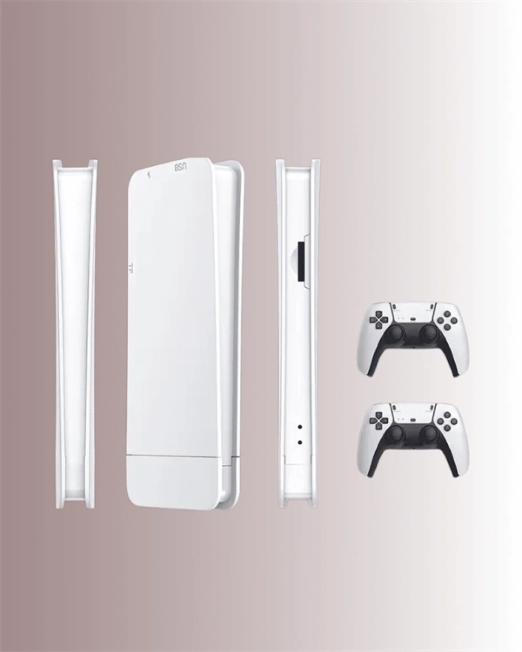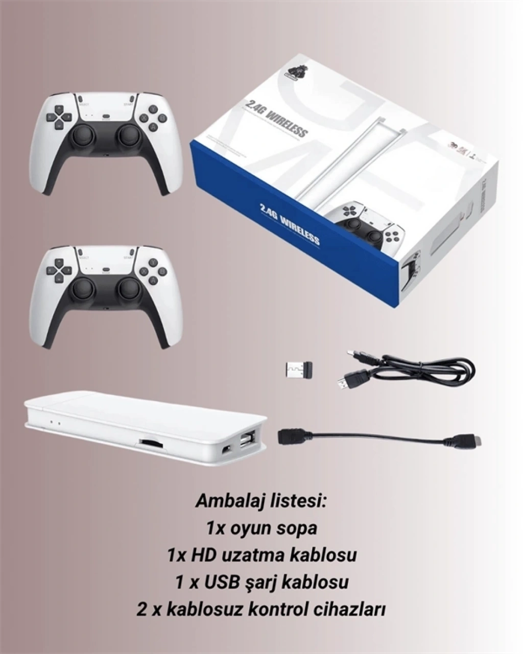 Cihazla birlikte gelen çift kablosuz gamepad, modern PS5 tasarımını andıran es görünümüyle dikkat çeker. Kablosuz olması sayesinde oyun oynarken kablo karmaşasına son verir, koltukta, yerde ya da yatakta özgürce oyun oynayabilirsiniz. Ergonomik yapısı sayesinde uzun süreli kullanımlarda dahi konforlu bir tutuş sağlar. İki kişiyle keyifli rekabetli oyunlar da mümkün.