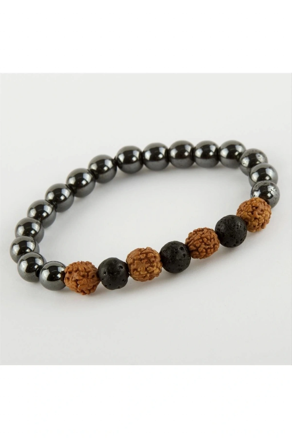 Doğal taş Bileklik; Hematit ve lav doğal taşından imal edilmiştir. Lastik misina kullanılmıştır.