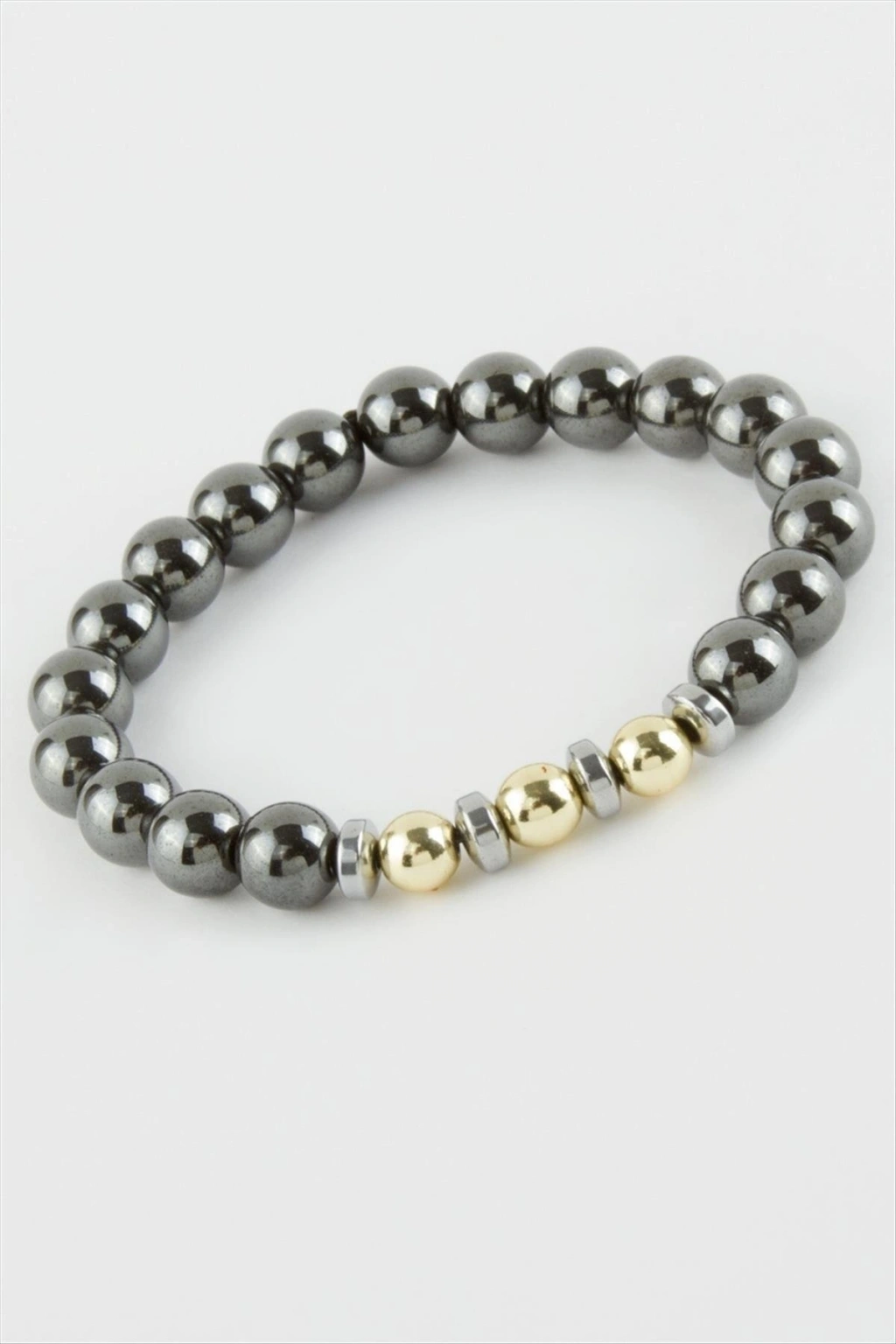 Doğaltaş Bileklik; Hematit doğal taşından imal edilmiştir. Lastik misina kullanılmıştır.
