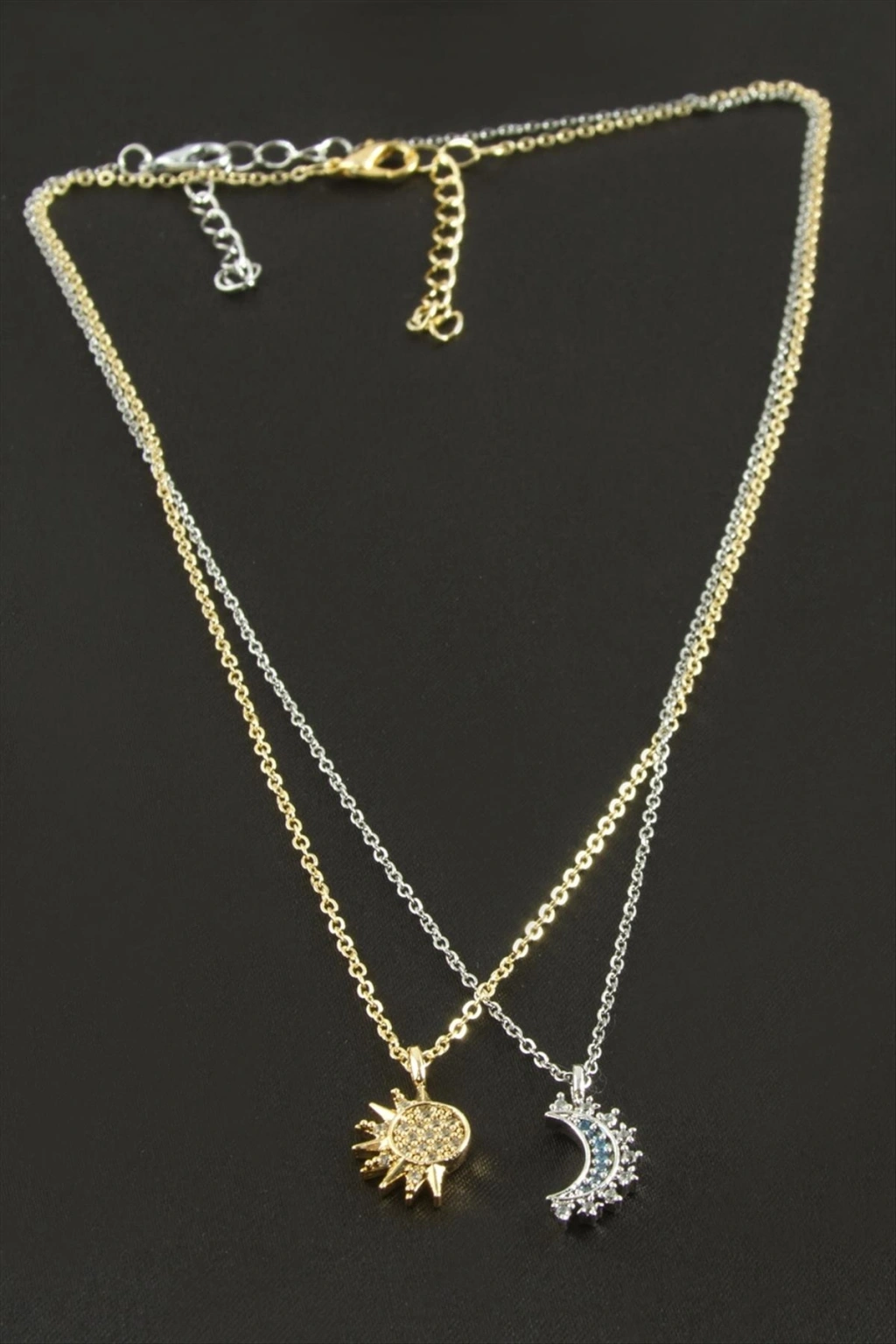 Kolye; Ürün malzemesi metal ve zirkon taşdır. Kartlıdır. Fiyat 1 kartta 2 adet olarak gönderilecektir.