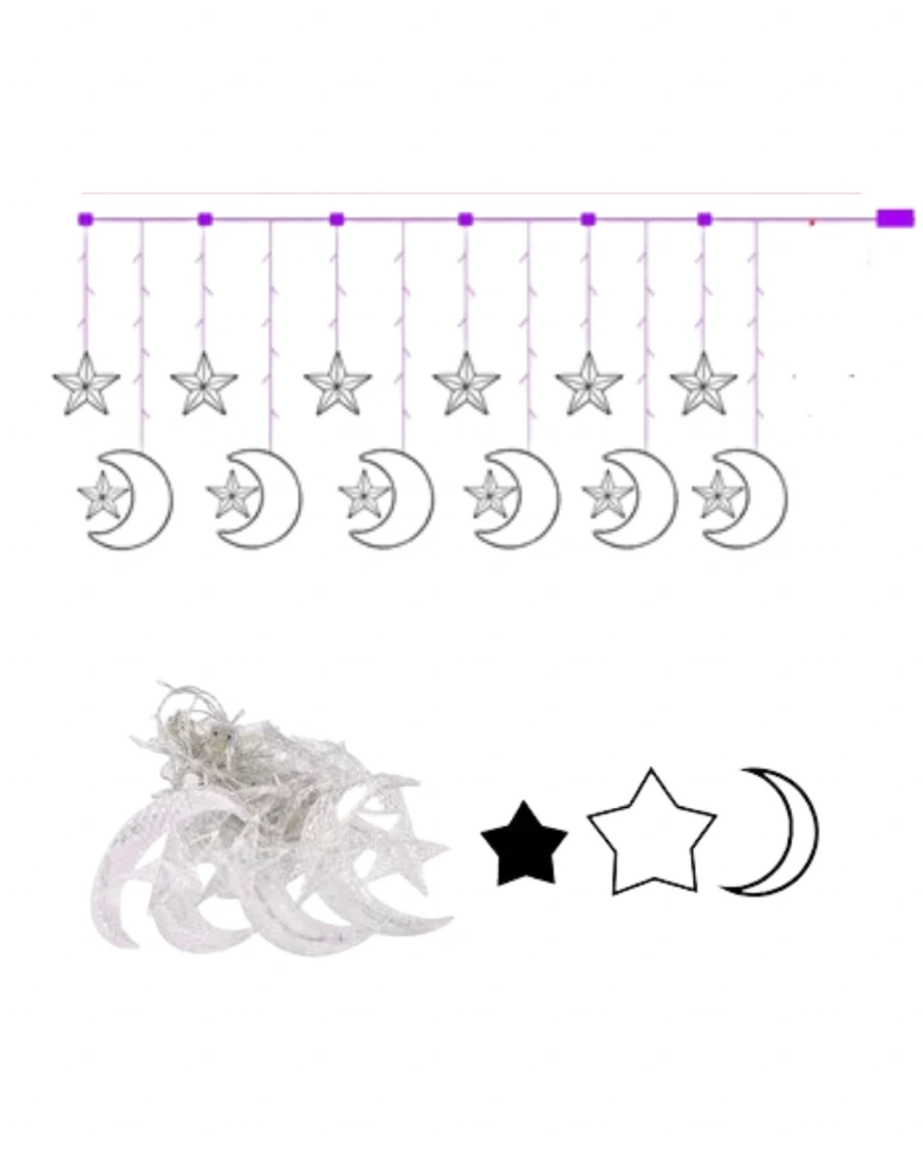 Hilal Yıldız Led Perde Işık Balkon Pencere Ve Oda Dekorasyonu