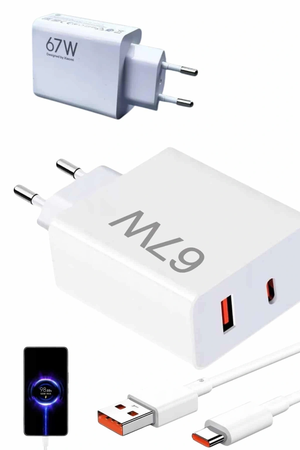 Hızlı Şarj Aleti Adaptörü Kablo Seti 67w Uzun Ömürlü Beyaz