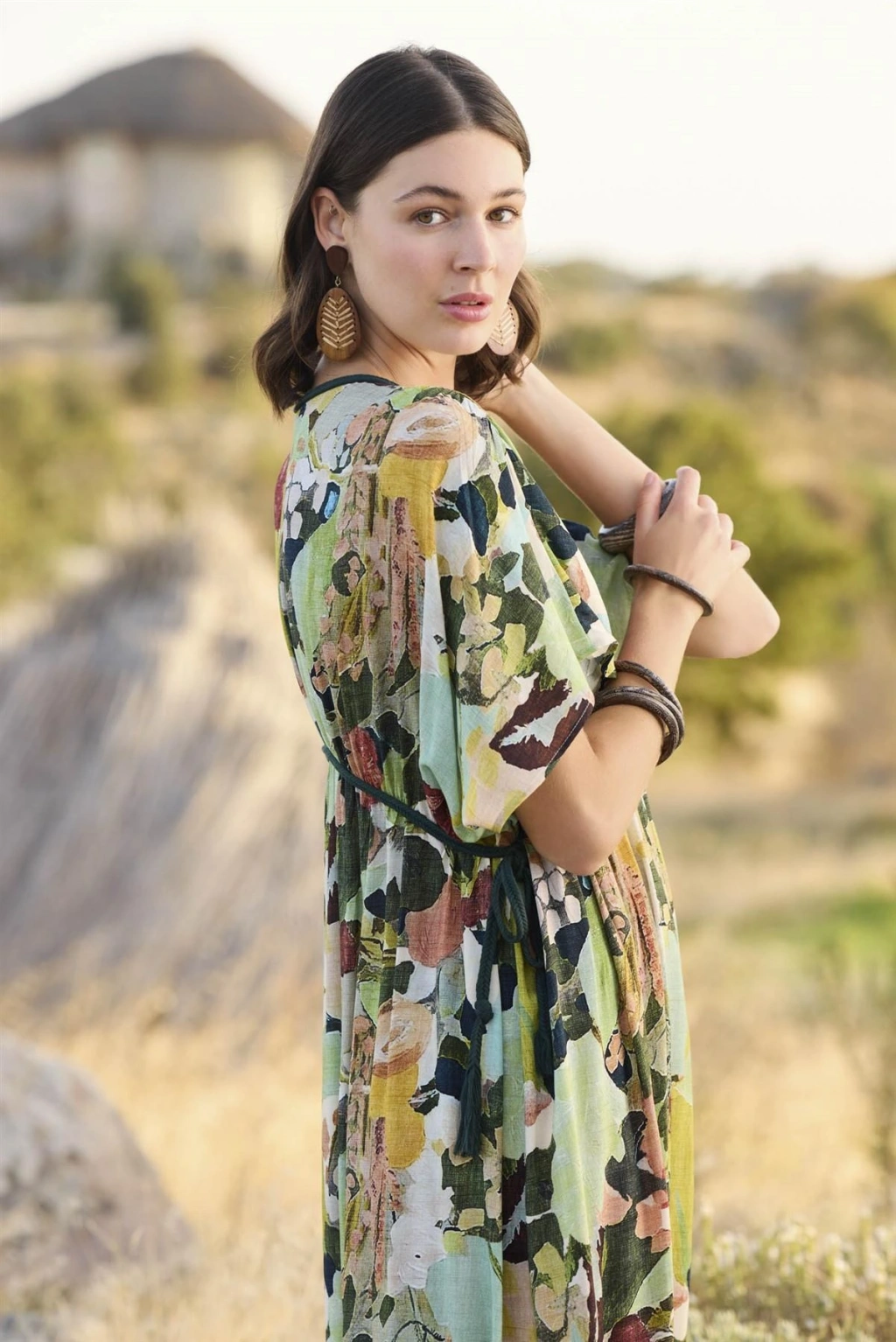 MARSiLYAN- Yaprak Desenli Kısa Kollu Elbise