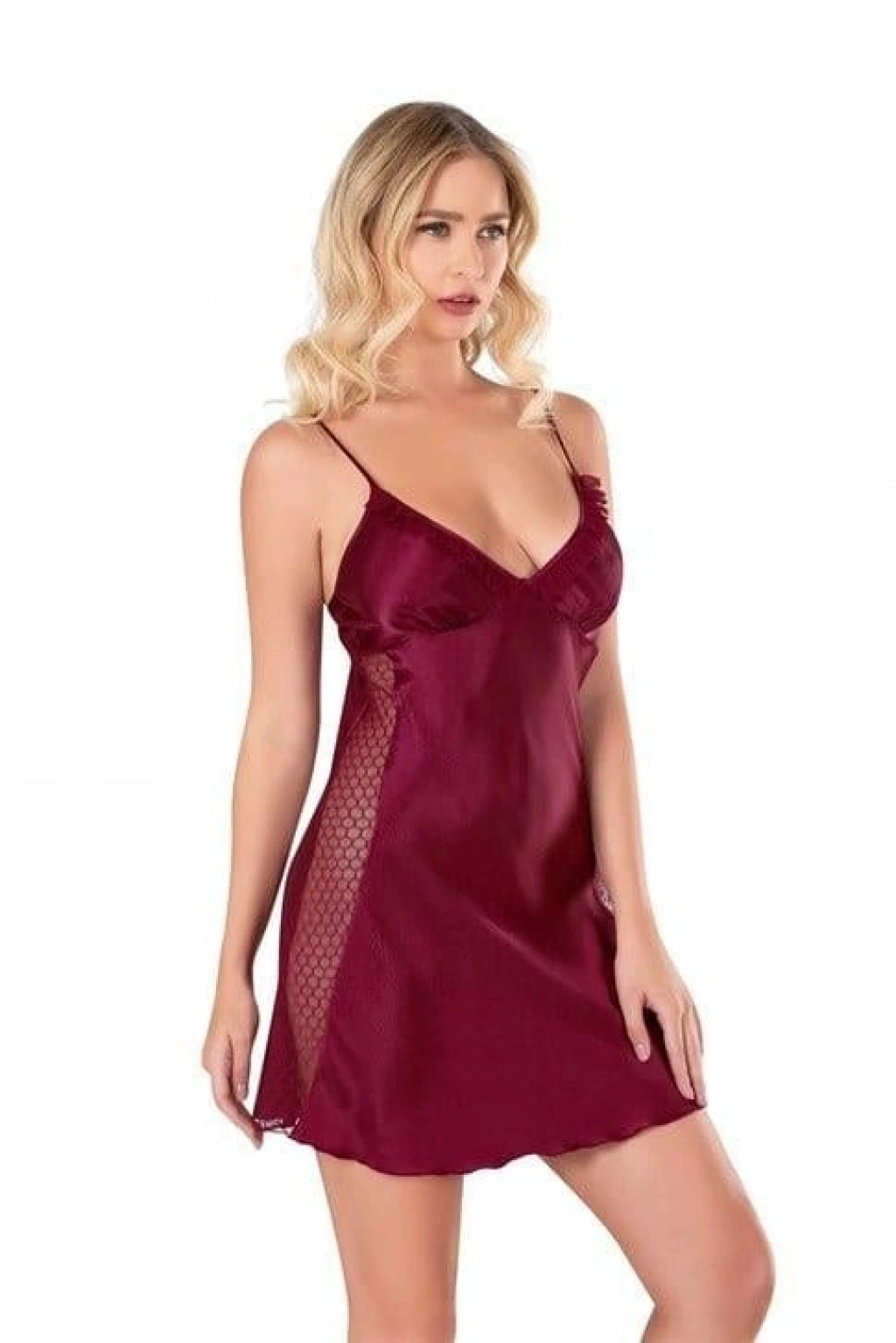 MARSiLYAN- Bordo Kısa Saten Gecelik 8105