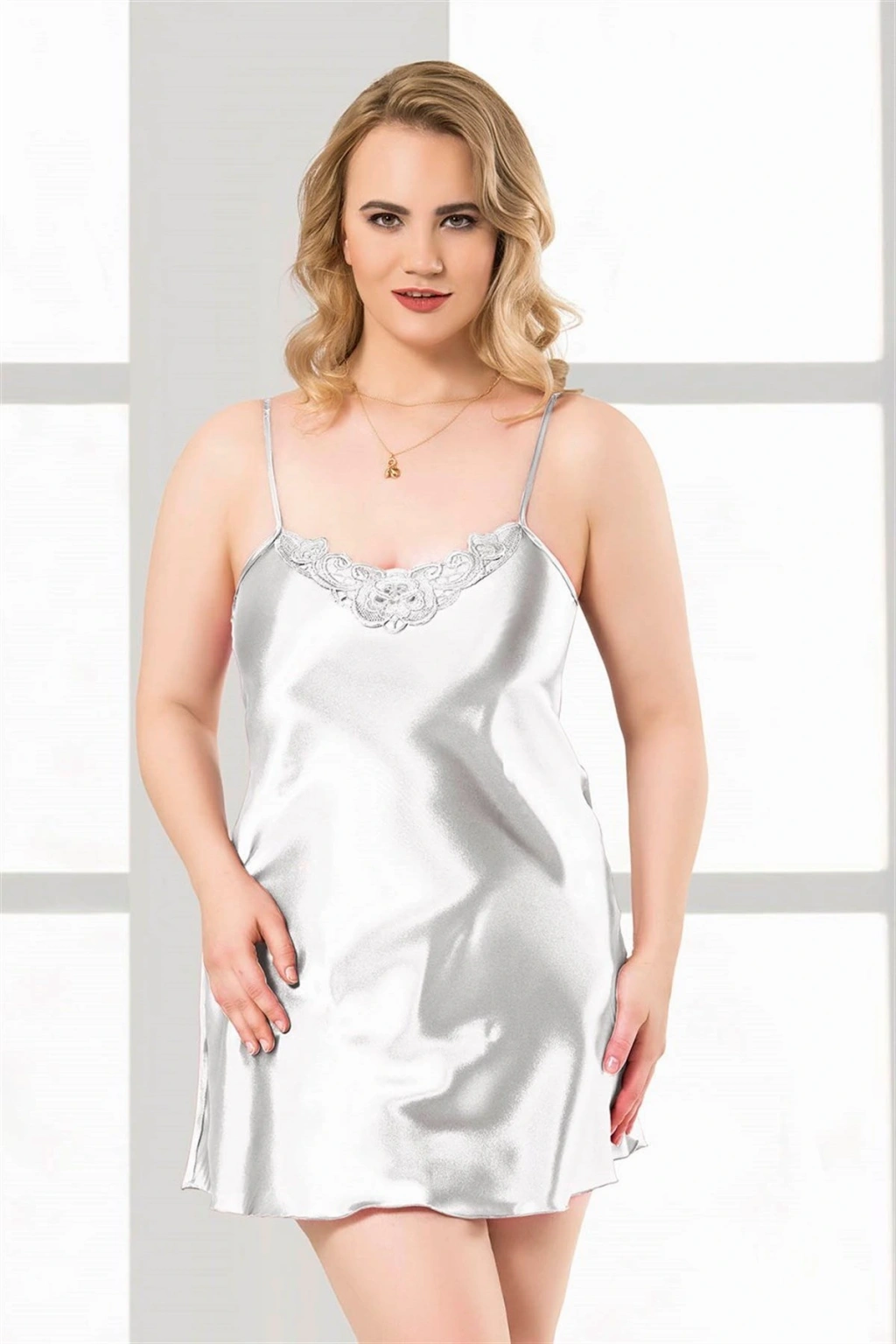 MARSiLYAN- Büyük Beden Beyaz Kısa Saten Gecelik
