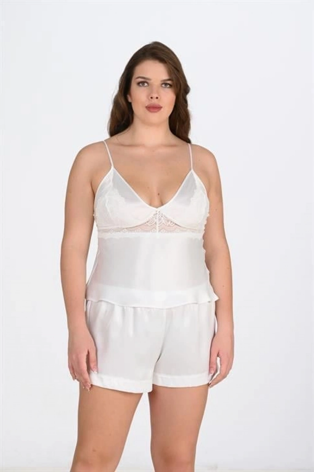 MARSiLYAN- Büyük Beden Ekru Saten Şort Takımı