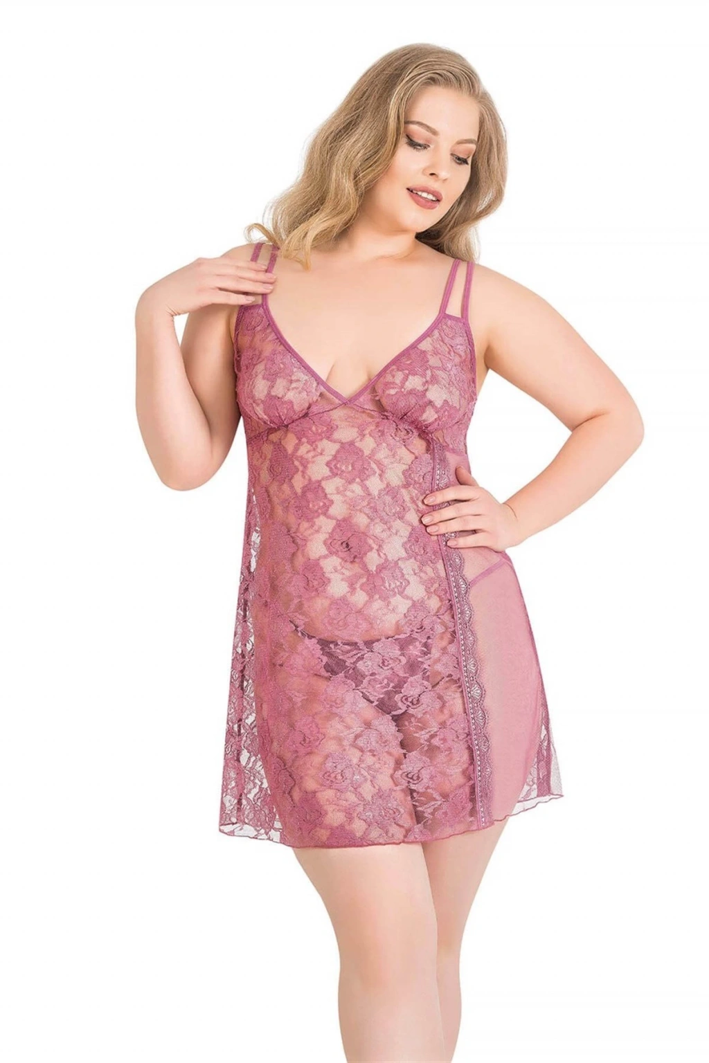 MARSiLYAN- Büyük Beden Gül Kurusu Kısa Tül Gecelik