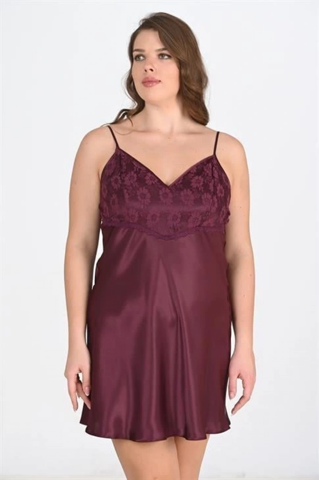 MARSiLYAN- Büyük Beden Mürdüm Gecelik 2108