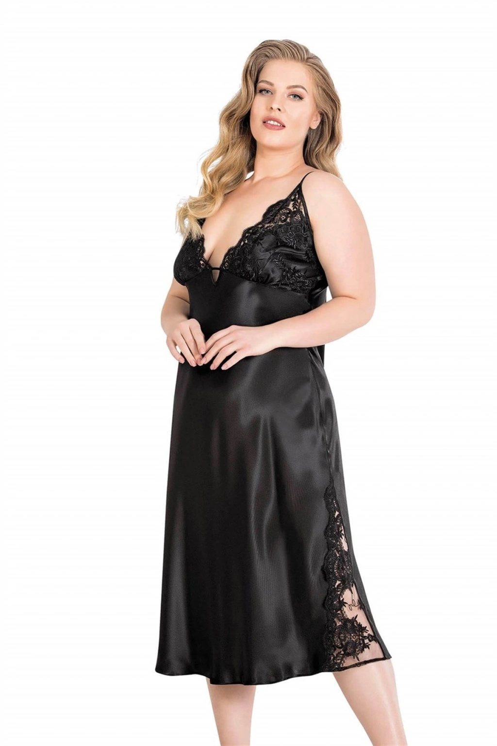 MARSiLYAN- Aria's Closet Büyük Beden Siyah Uzun İkili Saten Sabahlık Gecelik Takımı