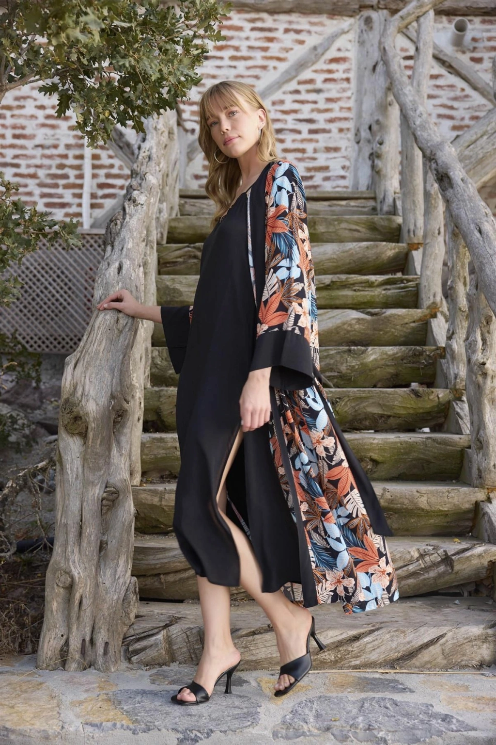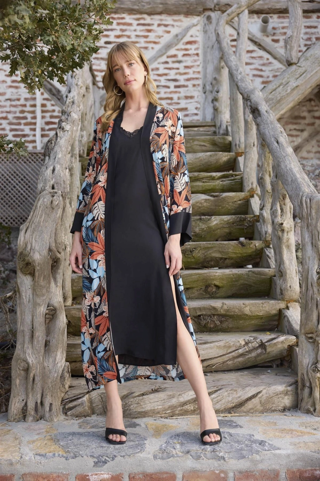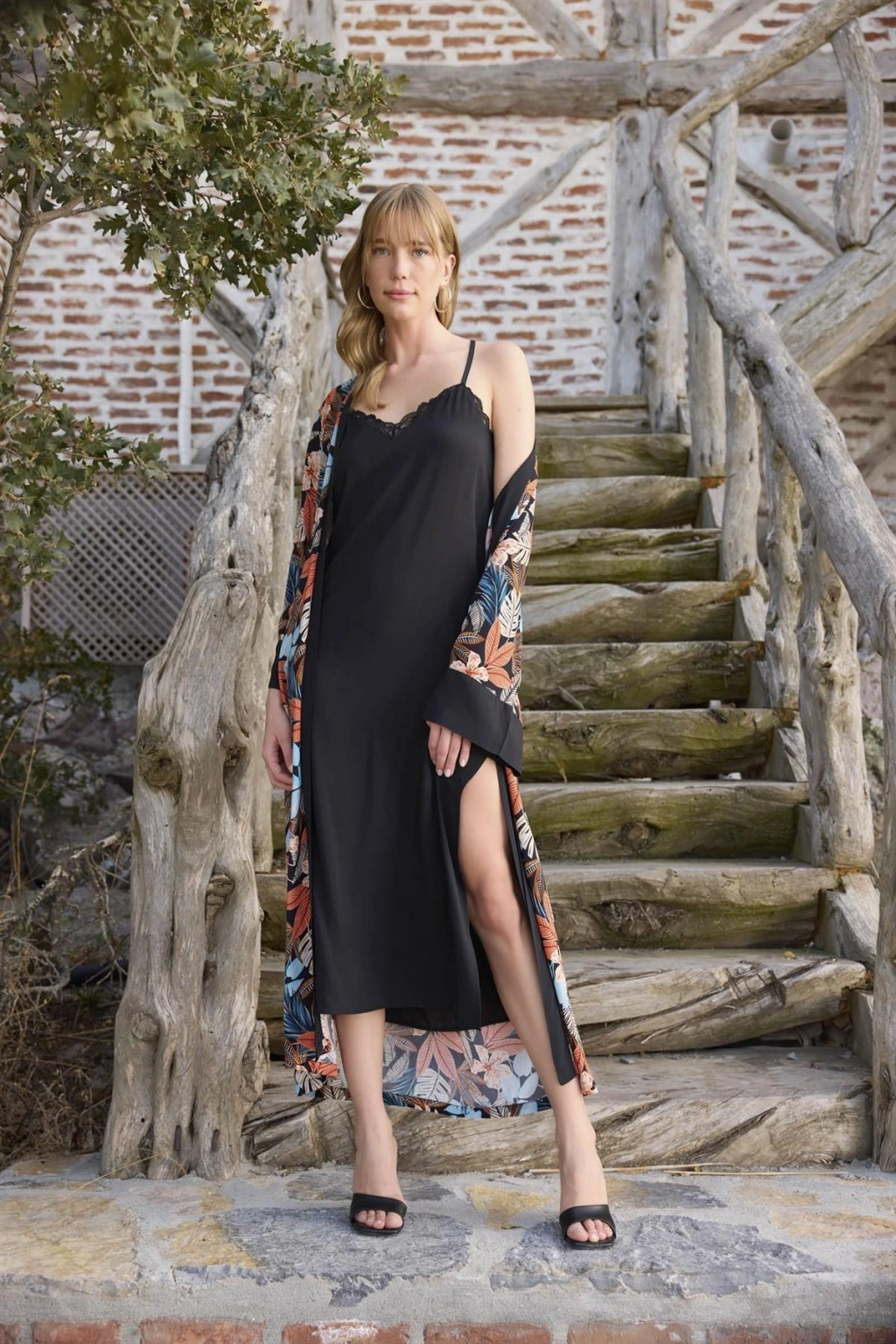 MARSiLYAN- Yaprak Desenli Yırtmaçlı Dantelli ve Dekolteli Sabahlık Takımı