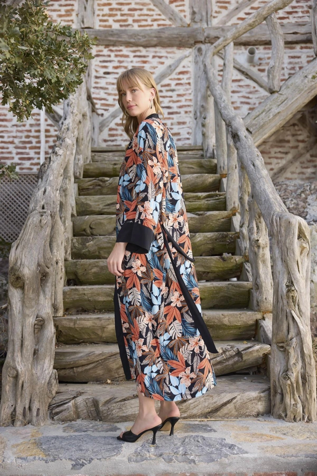 MARSiLYAN- Çiçek Yaprak ve Etnik Desenli Dantelli ve Dekolteli Sabahlık Takımı