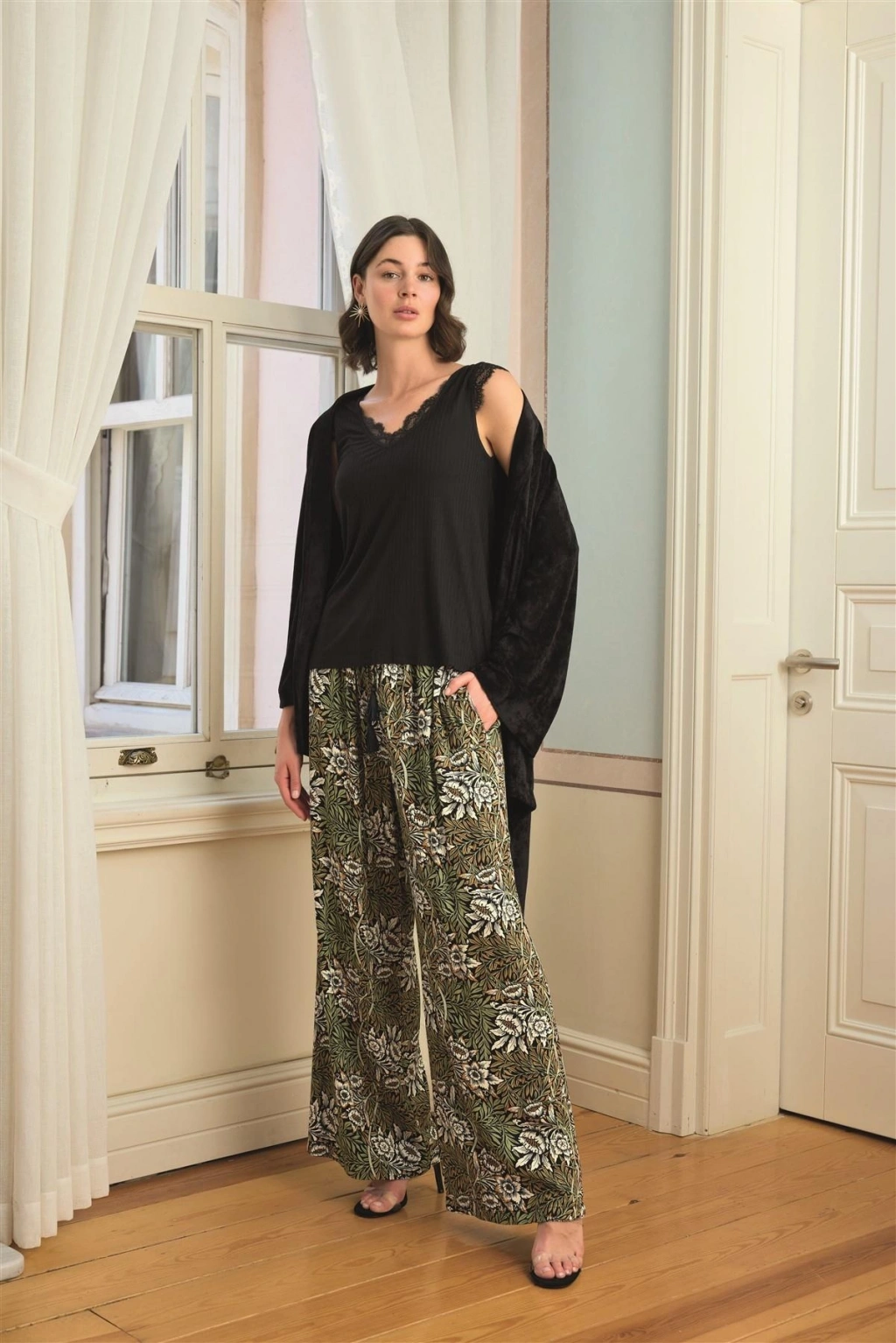 MARSiLYAN- Yaprak Desenli ve Dantelli 3'lü Pijama Takımı