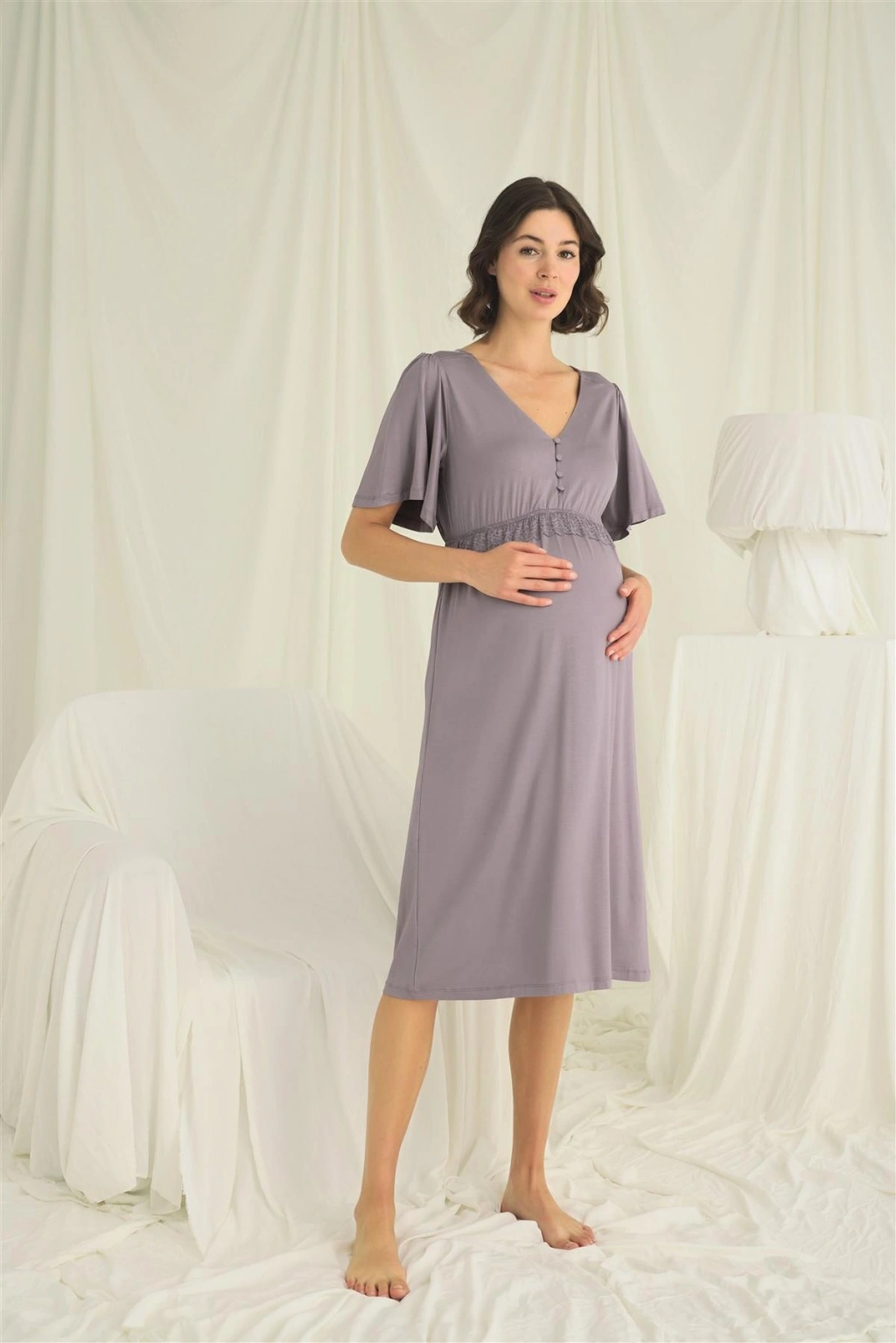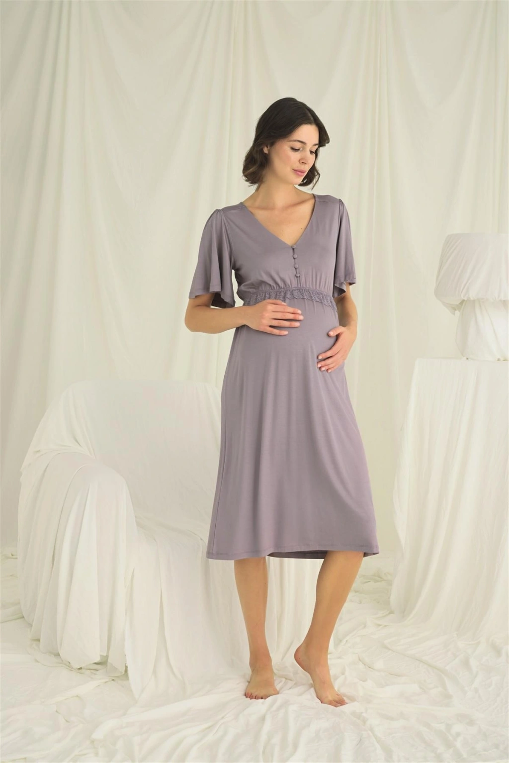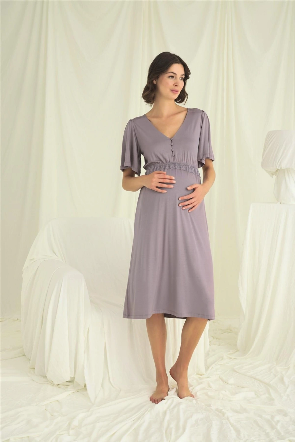 MARSiLYAN- Dantelli Önü Düğmeli Hamile Lohusa Gecelik