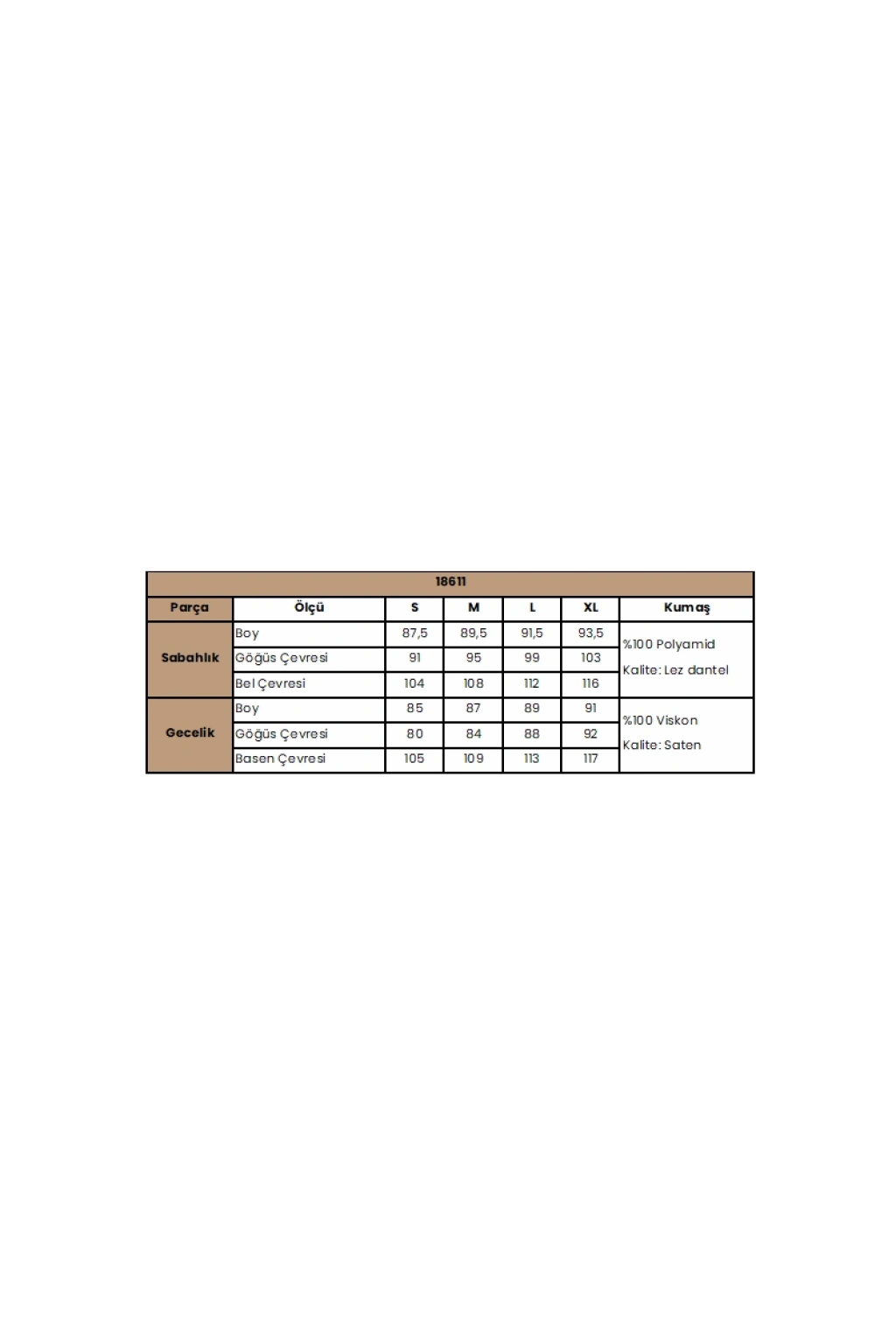 MARSiLYAN- Özel Tasarım Dantel İşlemeli Şık Göğüs Dekolteli Sabahlıklı 2'li Saten Gecelik Takımı