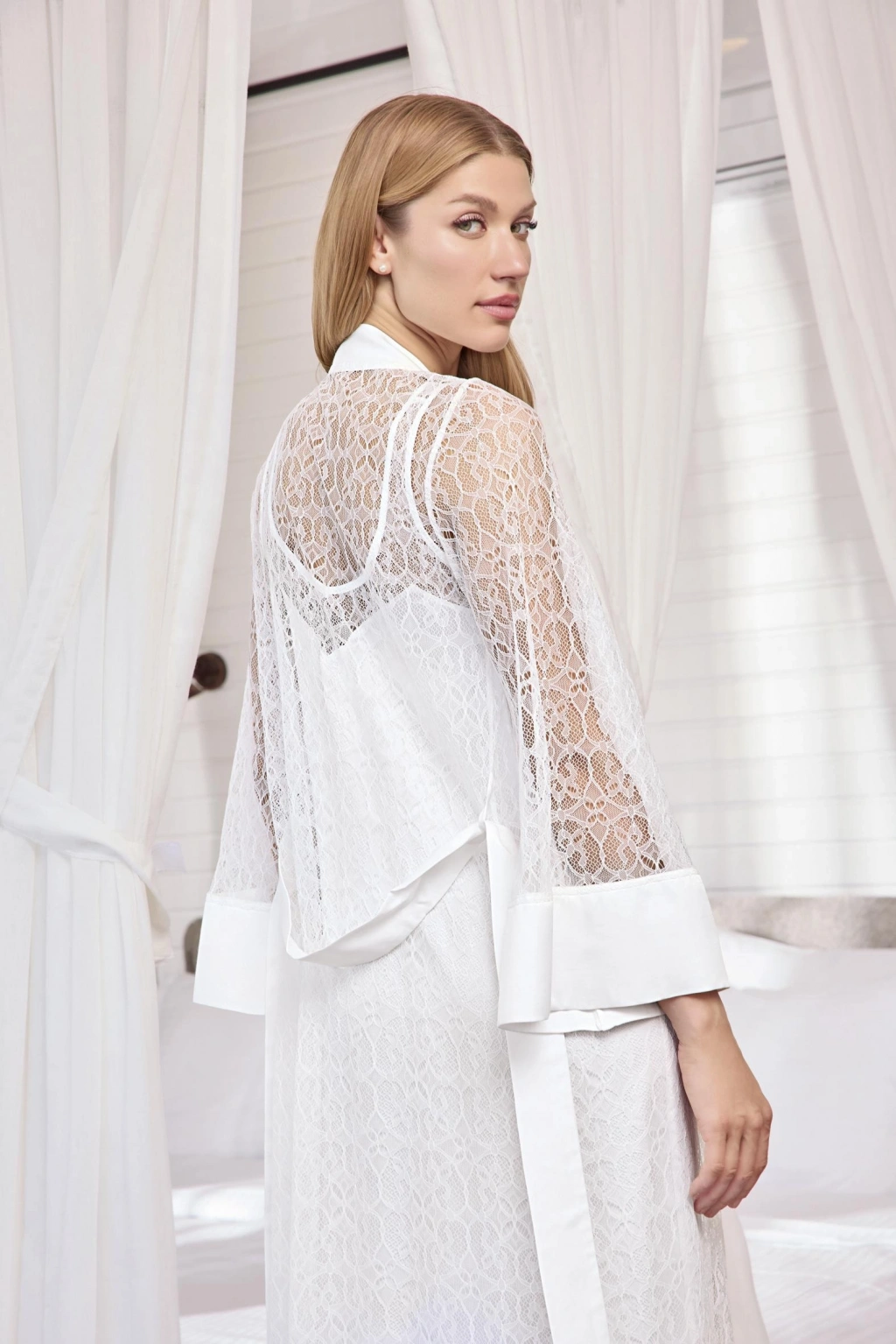 MARSiLYAN- Dantelli Tüllü ve Dekolteli Saten Sabahlık Takımı