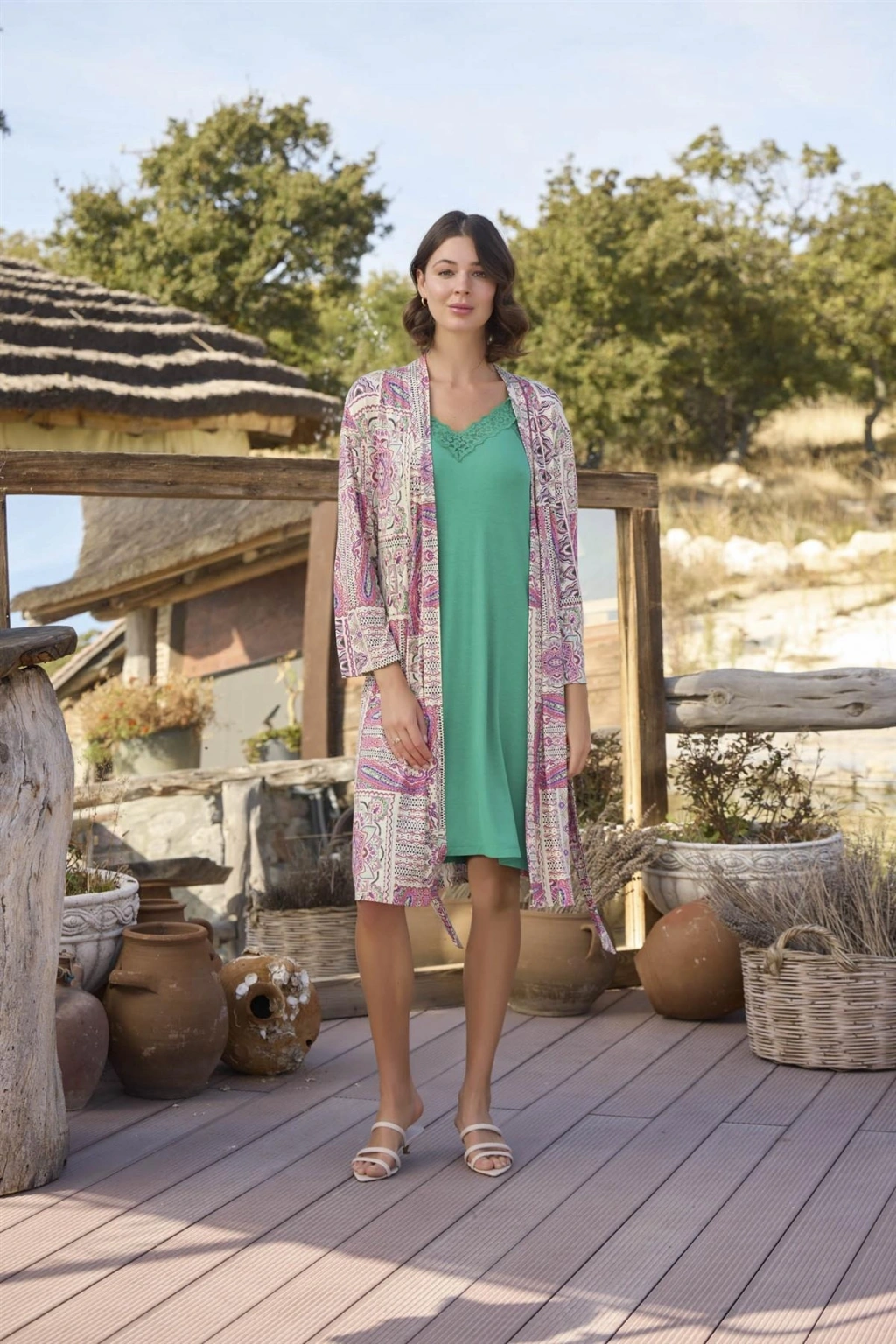MARSiLYAN- Etnik Deseni ve Dantelli Sabahlık Takımı