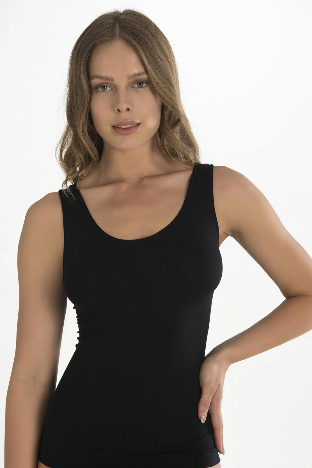 MARSiLYAN- Geniş Askılı Siyah Ribana Atlet