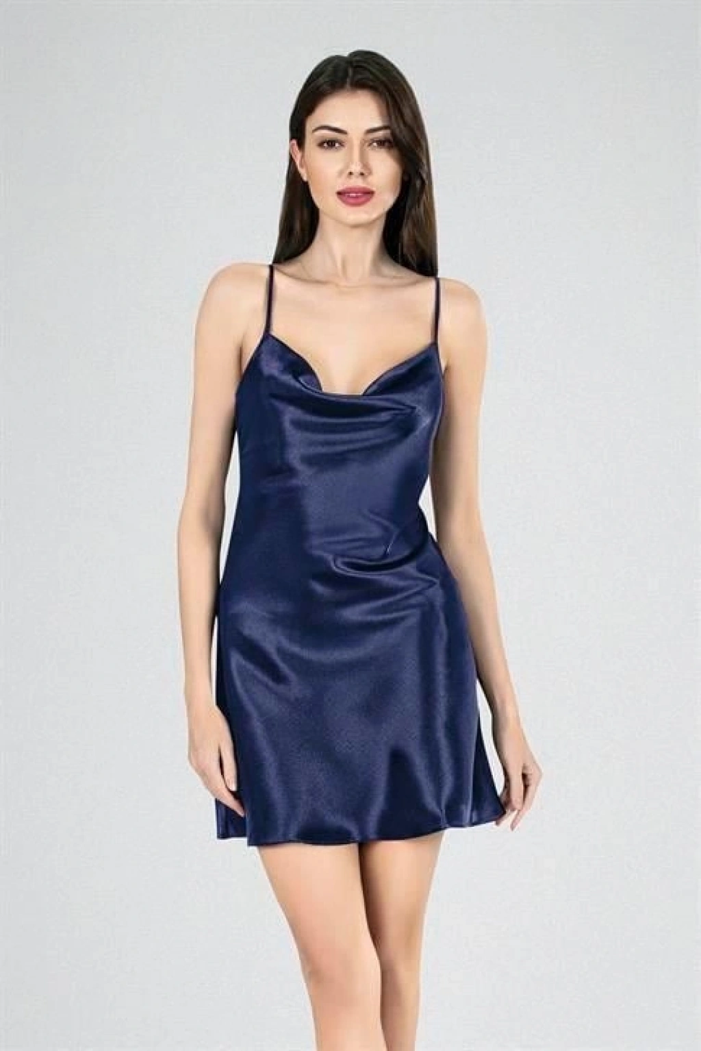 MARSiLYAN- Lacivert Kısa Saten Gecelik 8121