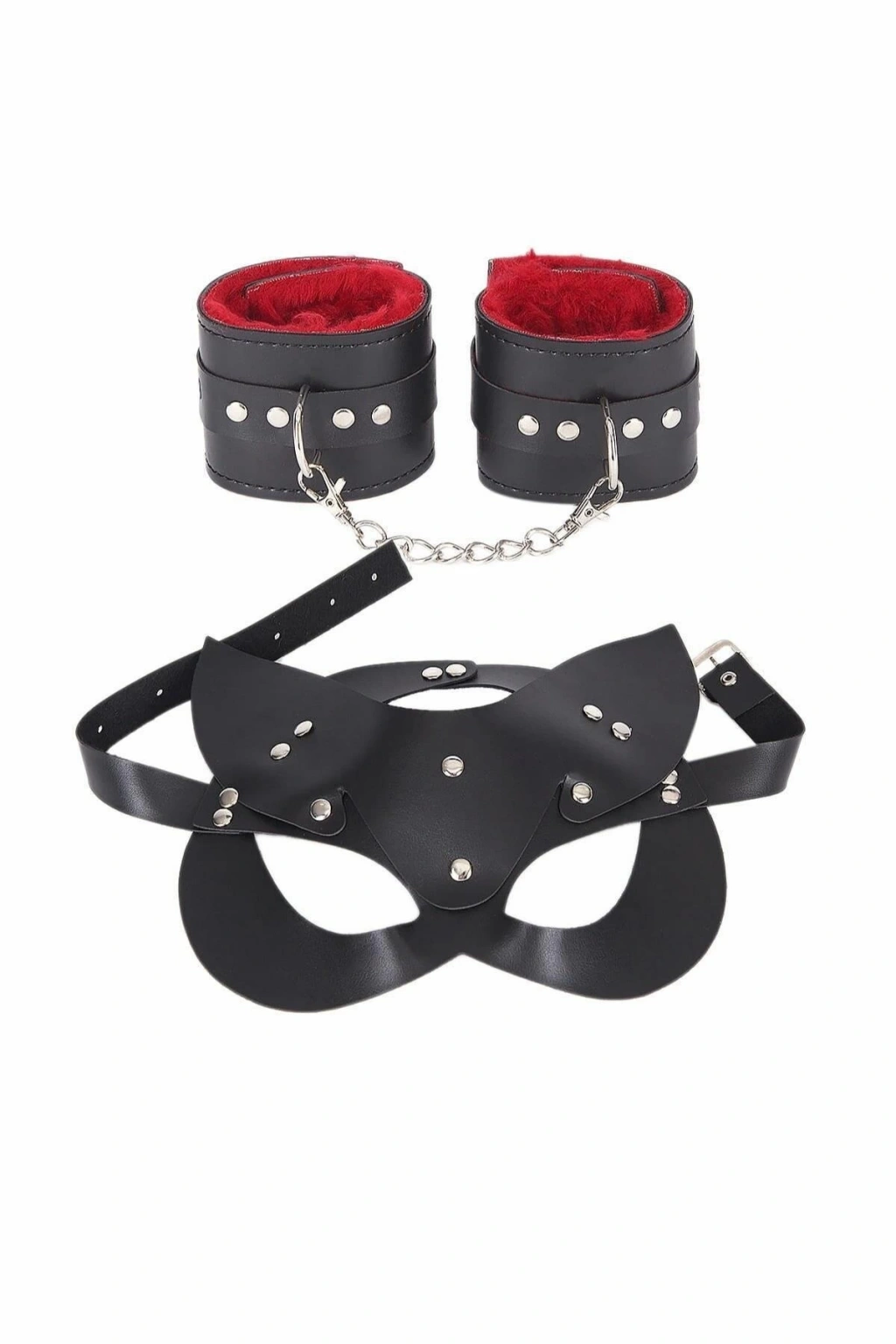 MARSiLYAN- Maske Ve Kelepçe Deri Harness Fantezi Set