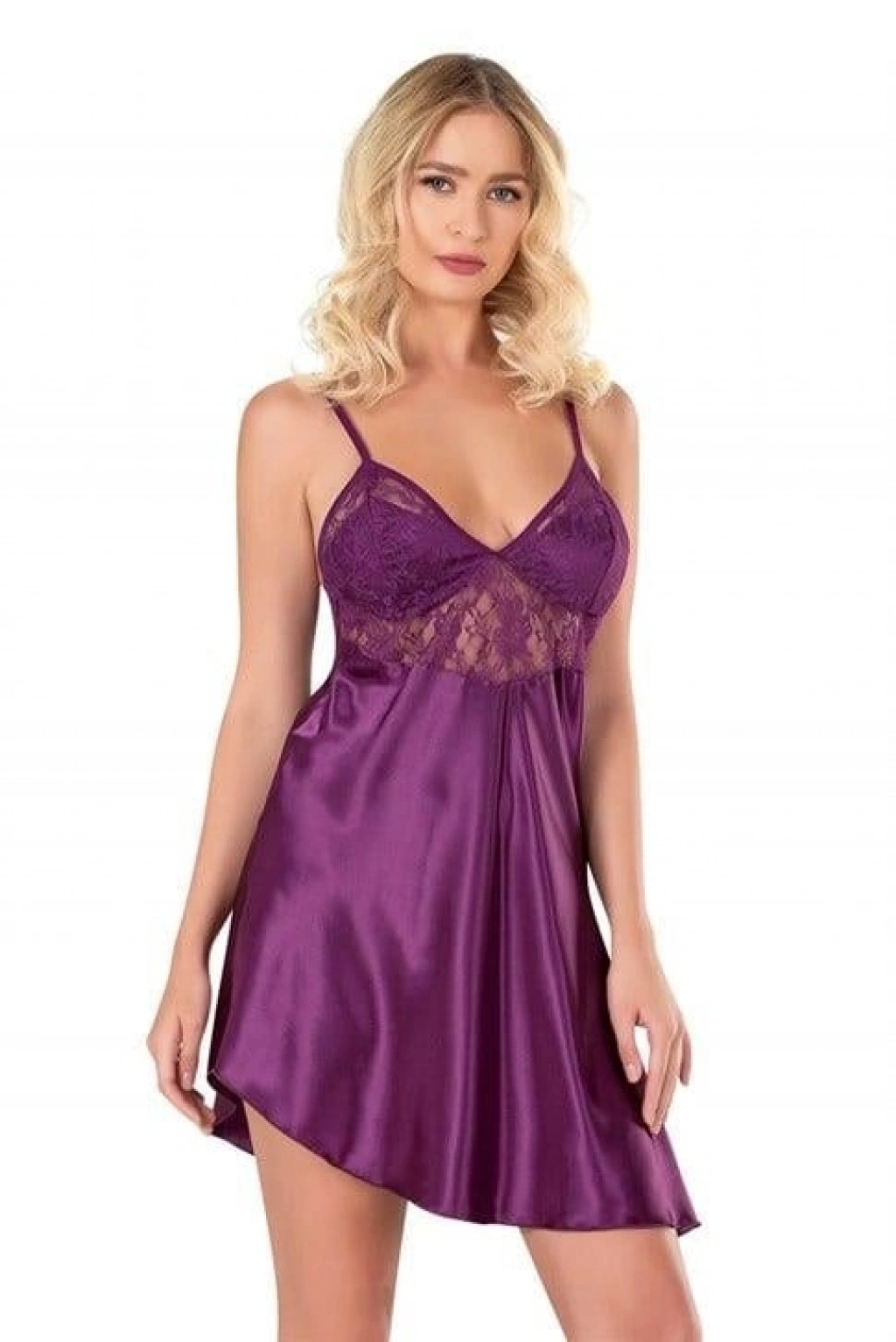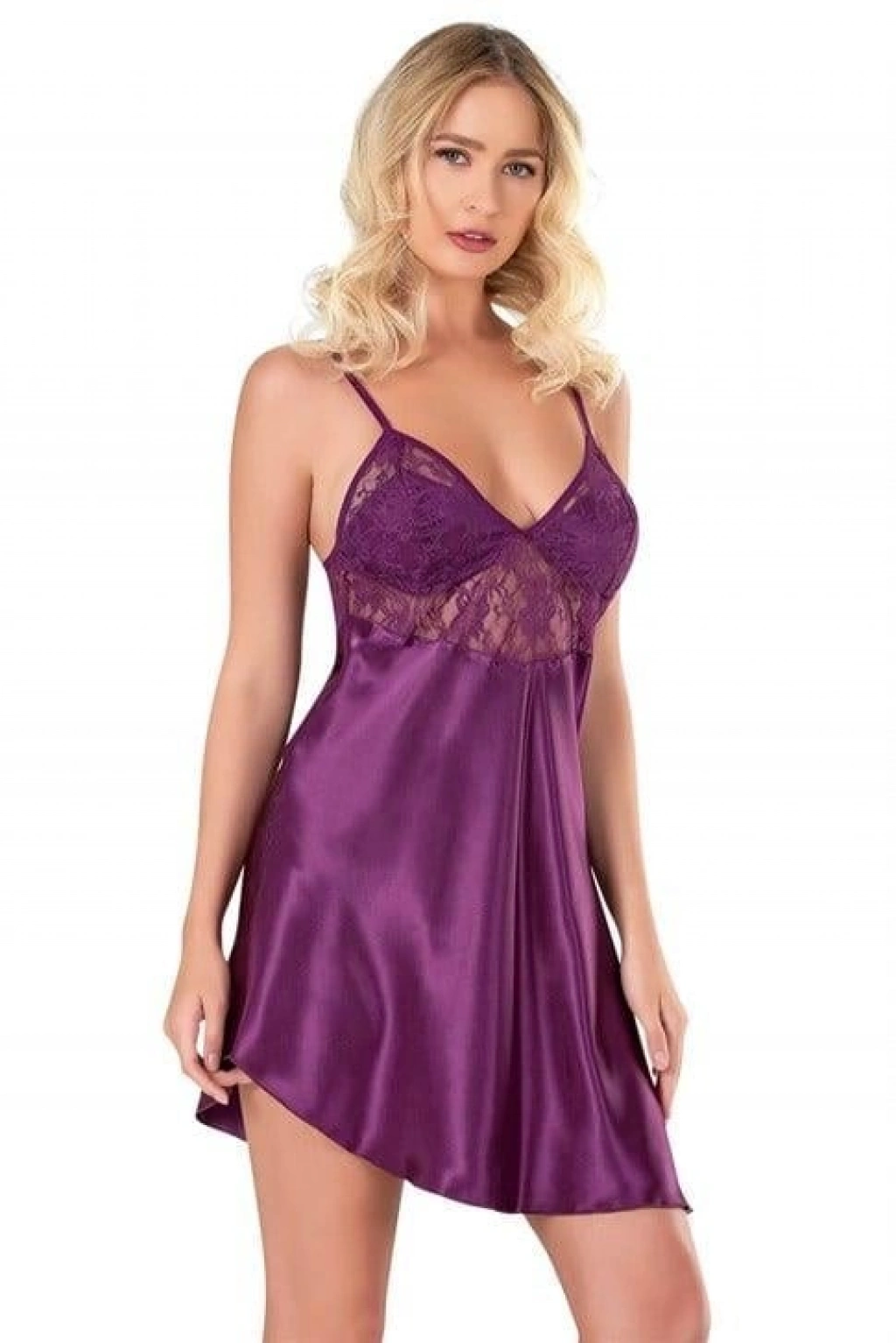 MARSiLYAN- Mor Kısa Saten Gecelik