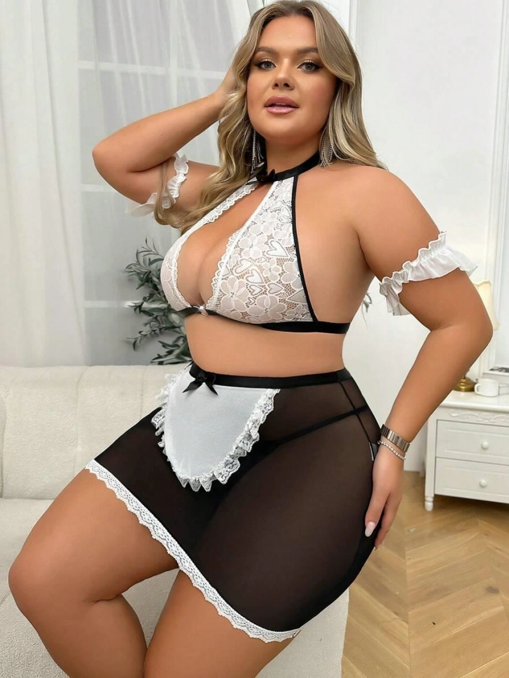 MARSiLYAN- Özel Tasarım Büyük Beden Dantelli Fantezi Hizmetçi Kostümü