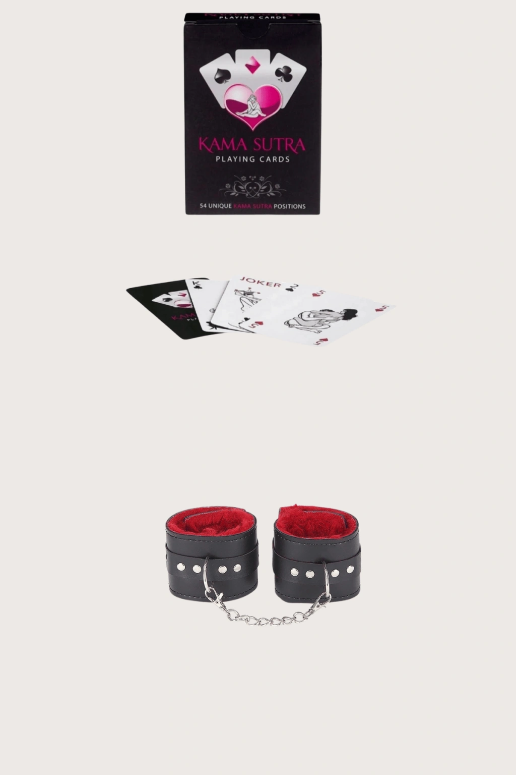 MARSiLYAN- Sexy Görselli Oyun Kartı Kama Sutra Siyah Kırmızı Kelepçe Set
