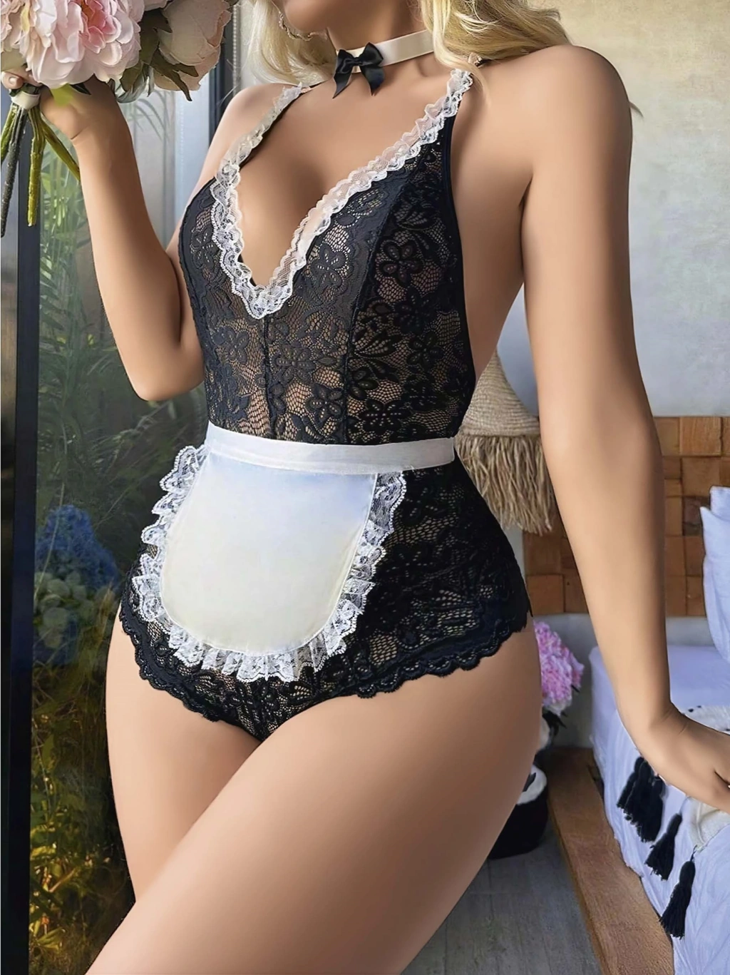 MARSiLYAN- Siyah Dantelli Fantezi Body Hizmetçi Kostümü