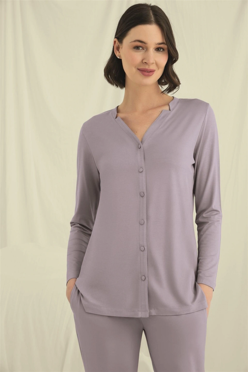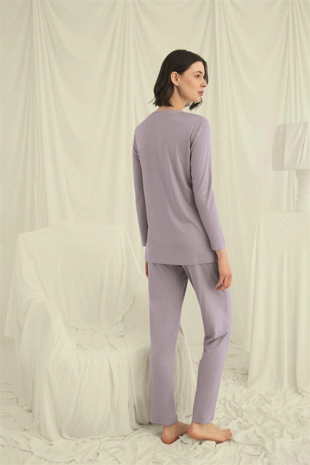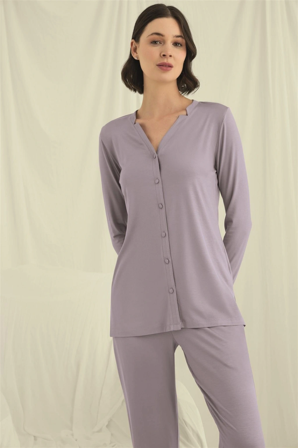 MARSiLYAN- Uzun Kollu Boydan Düğmeli V Yaka Pijama Takımı