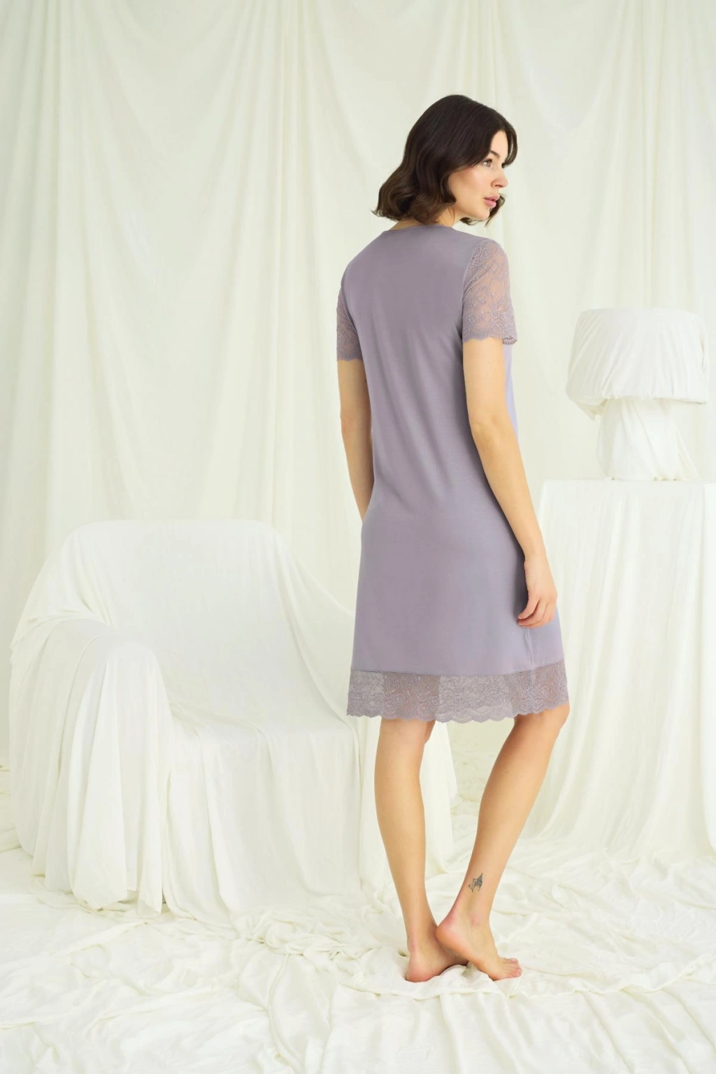 MARSiLYAN- Yakası Dantelli Kısa Kollu Gecelik