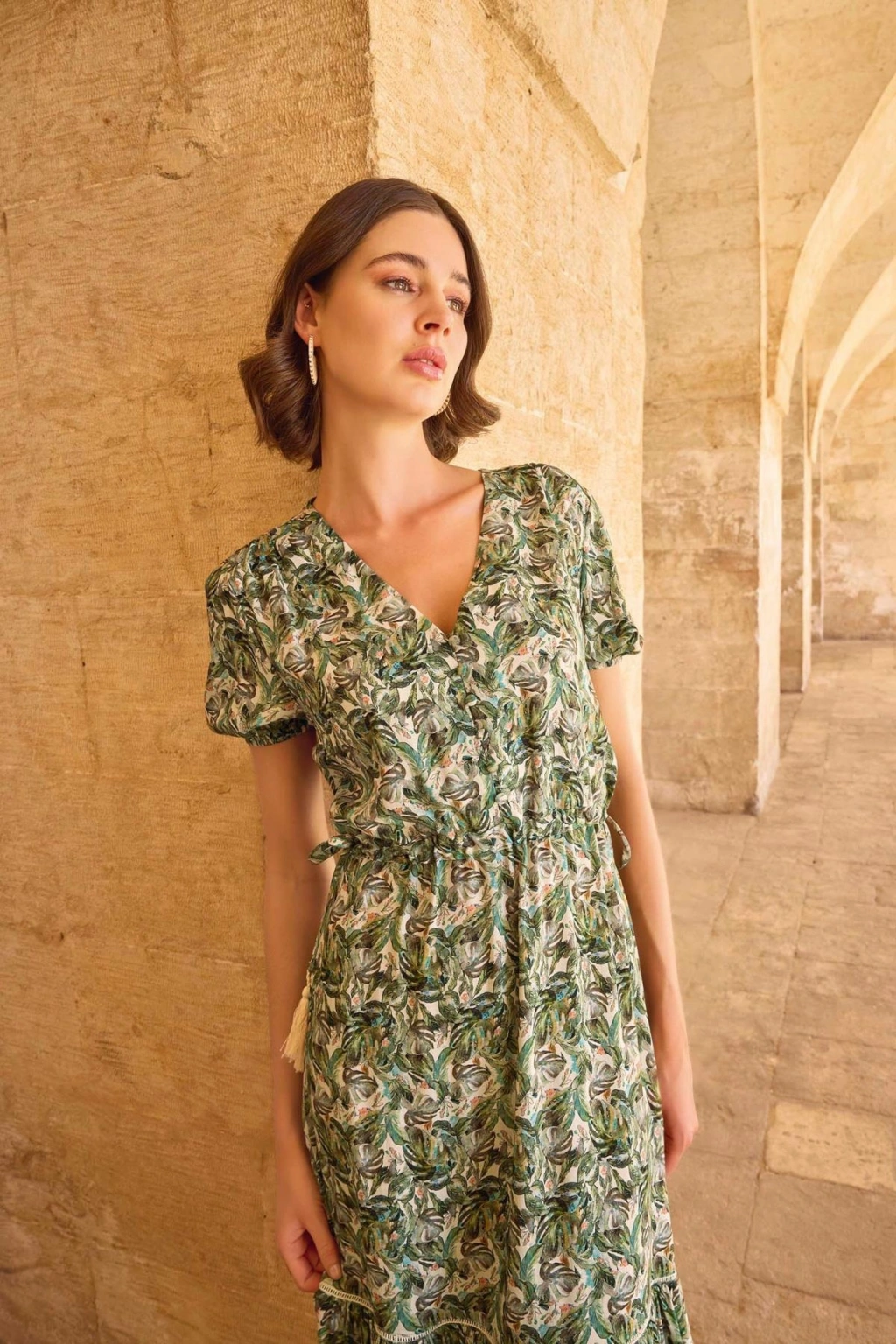 MARSiLYAN- Yaprak Desenli Kısa Kollu Elbise