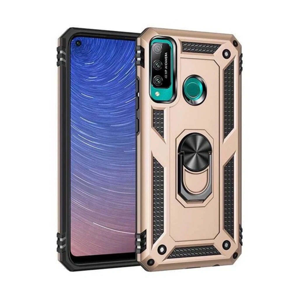 Huawei P40 Lite E Kılıf Sofya Yüzüklü Silikon Kapak - Gold