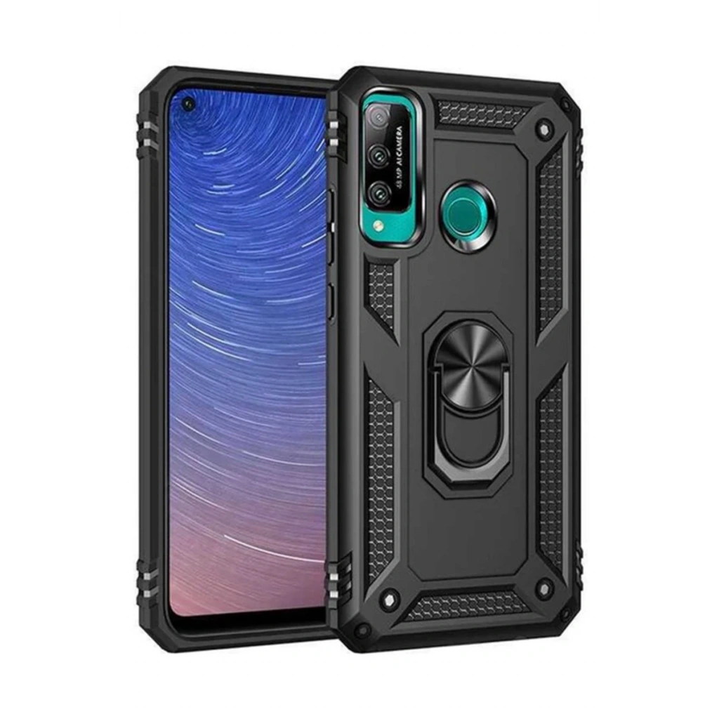 Huawei P40 Lite E Kılıf Sofya Yüzüklü Silikon Kapak - Siyah