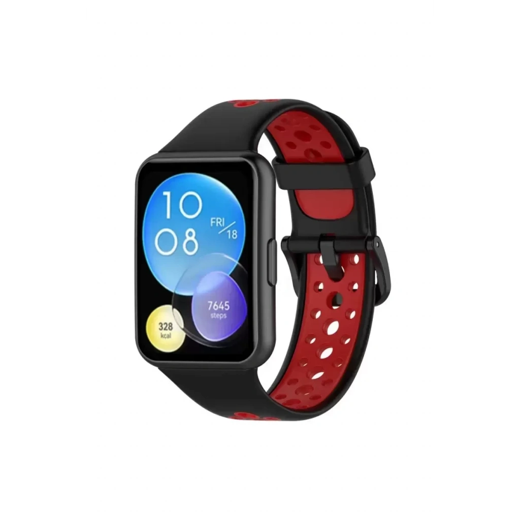 Huawei Watch Fit 2 Spor Delikli Kordon - Siyah-Kırmızı