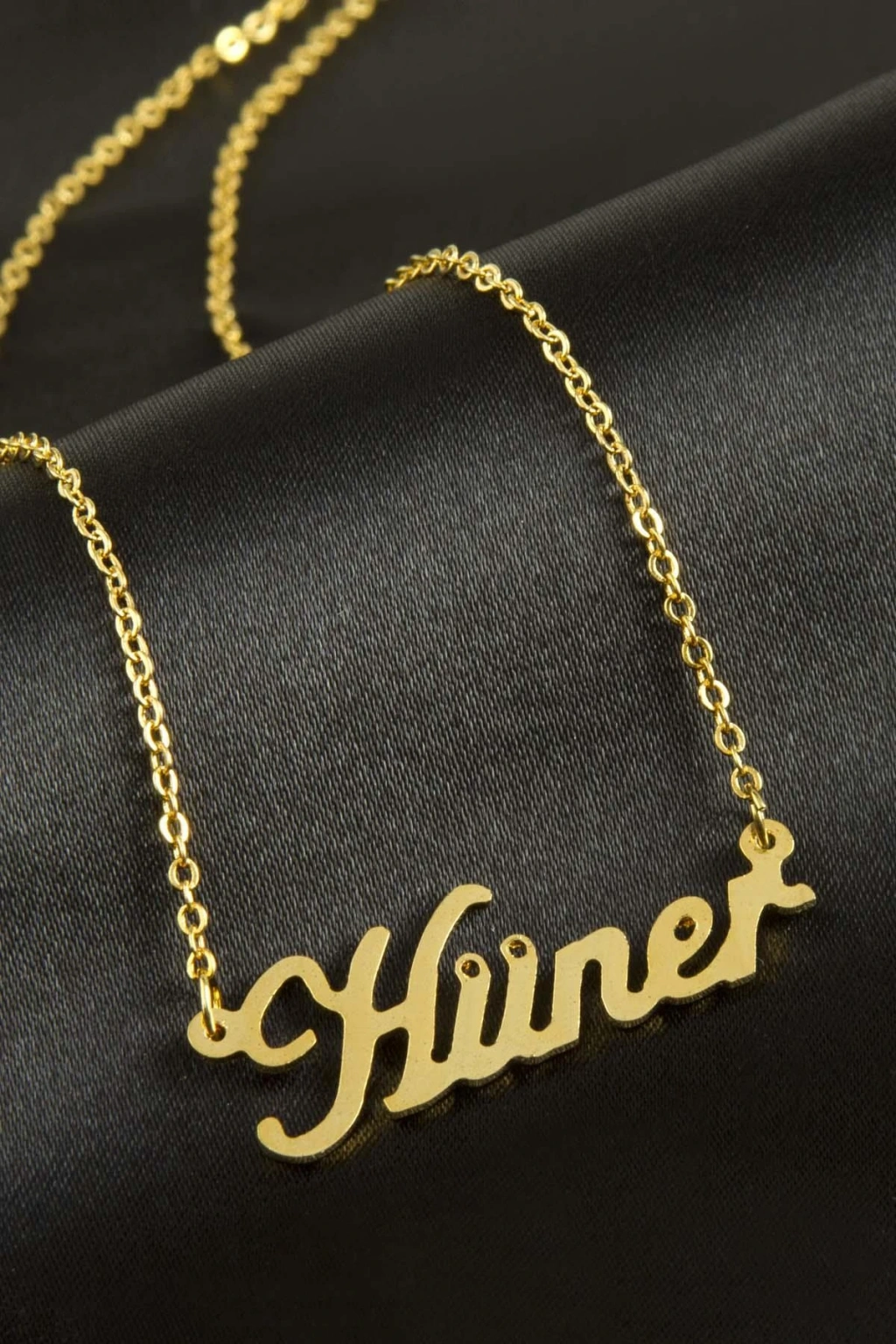 Hüner isimli kolye. İsimli kolye pirinç madeninden ve altın kaplamalıdır. Kişiye özel üretilmektedir.Yazdırmak istediğiniz ismi bize mesaj olarak iletmeniz gerekmektedir. Kullanıma bağlı olarak uzun süre kullanıma uygundur. Ürün malzemesi 1.sınıf kalitededir. Ürün ve zinciri sarı renktedir. Ürün zincir boyu 45 cm ve ürün üzerindeki isimler yaklaşık 3 cmdir. İsim boyları ürün ismine göre degişiklik göstermektedir.