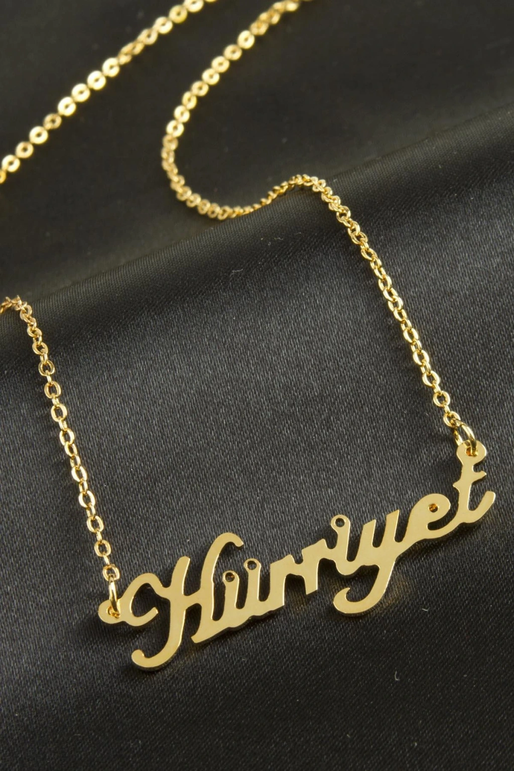 Hürriyet isimli kolye. İsimli kolye pirinç madeninden ve altın kaplamalıdır. Kişiye özel üretilmektedir.Yazdırmak istediğiniz ismi bize mesaj olarak iletmeniz gerekmektedir. Kullanıma bağlı olarak uzun süre kullanıma uygundur. Ürün malzemesi 1.sınıf kalitededir. Ürün ve zinciri sarı renktedir. Ürün zincir boyu 45 cm ve ürün üzerindeki isimler yaklaşık 3 cmdir. İsim boyları ürün ismine göre degişiklik göstermektedir.