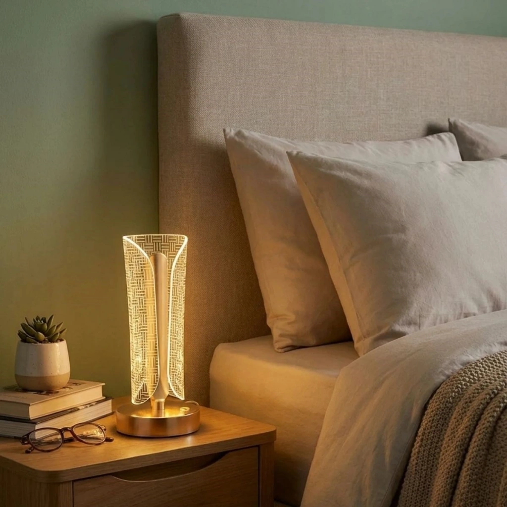 Modern tasarımı ve zarif detaylarıyla öne çıkan İki Yandan Kavisli Silindirik Çizgi Model Kristal LED Masa Lambası, yaşam alanlarınıza estetik ve sıcak bir atmosfer kazandırır. İki yandan kavisli kristal panelleri ve özel çizgi desenli yüzeyi sayesinde ışığı büyüleyici bir şekilde yansıtarak ortama şık bir ambiyans sunar.
