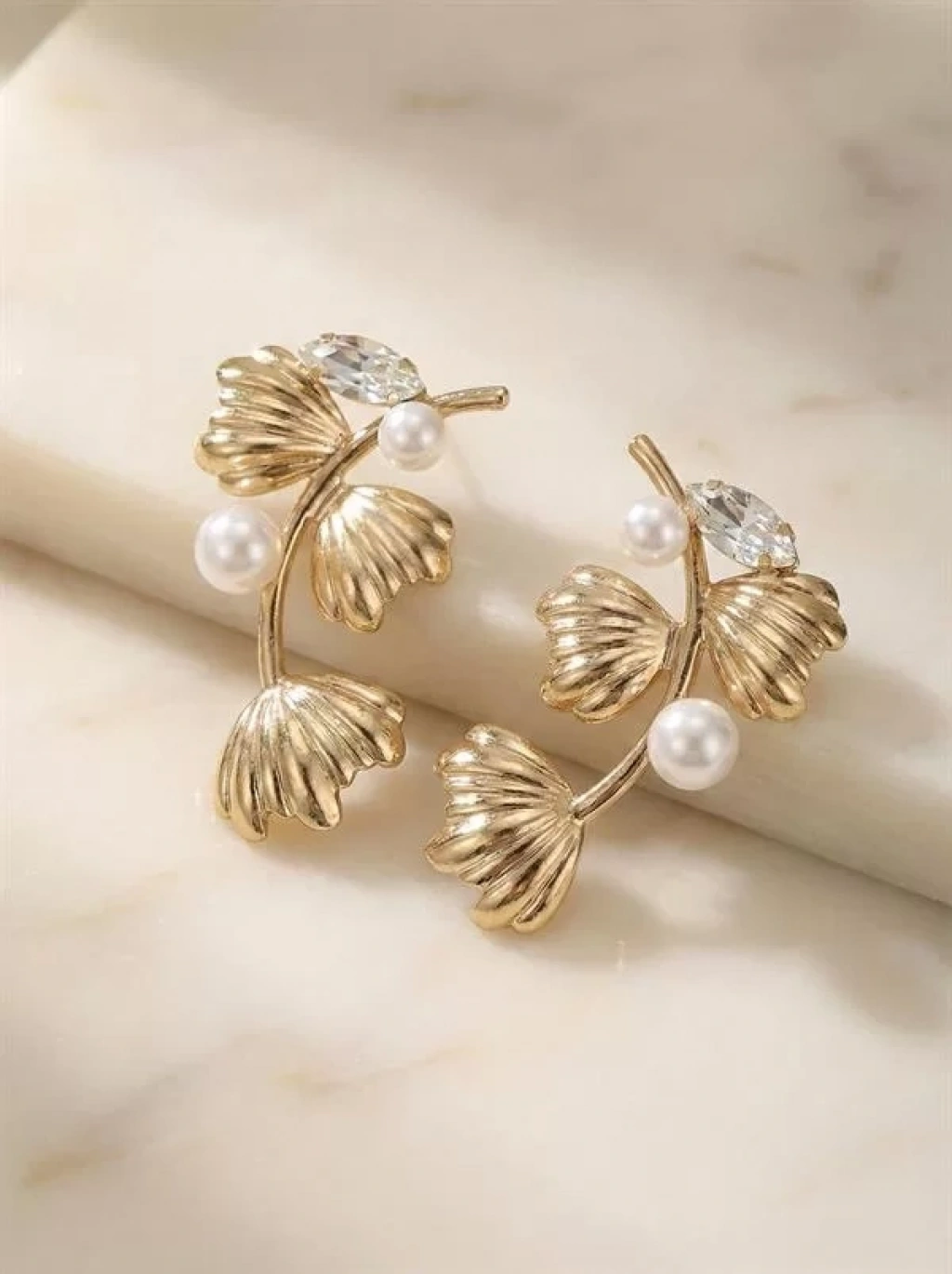 Metal Yaprak Küpe - Altın