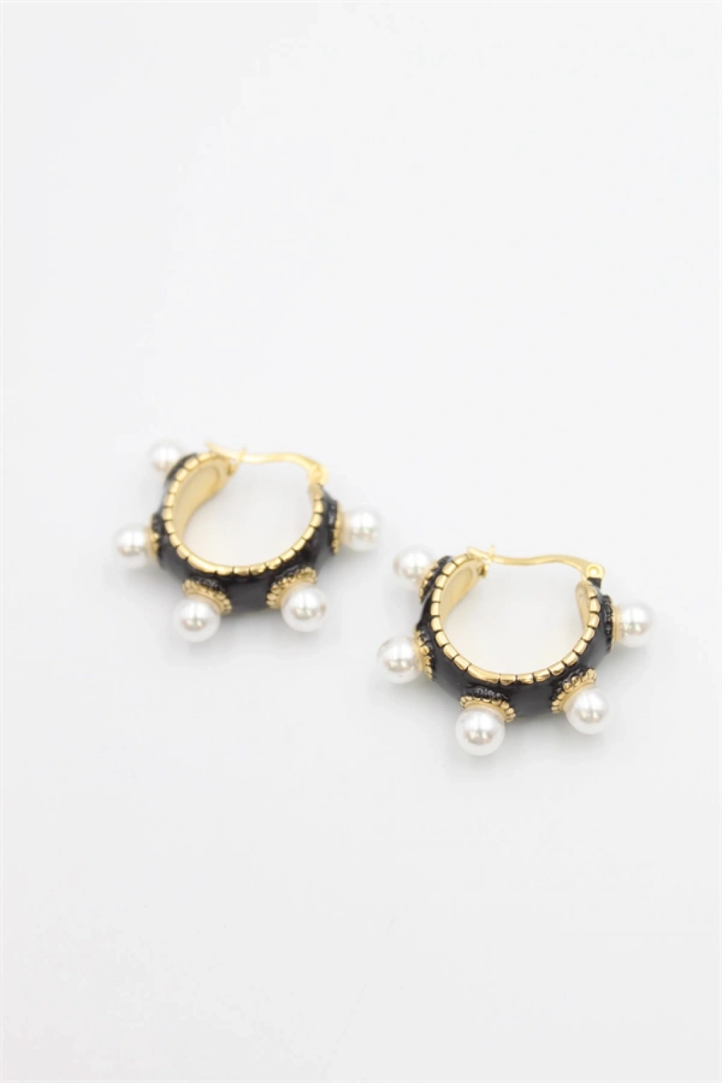 İncili Mineli Halka Küpe - Siyah