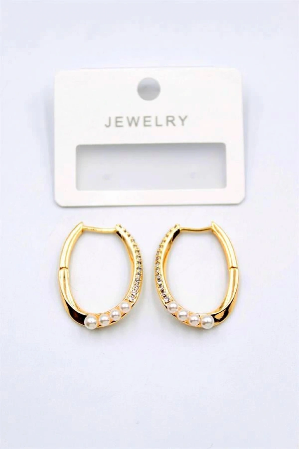 İncili Taşlı Halka Küpe - Altın