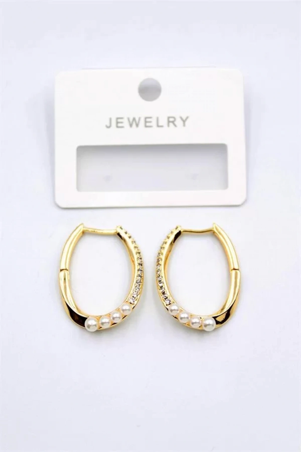 İncili Taşlı Halka Küpe - Altın
