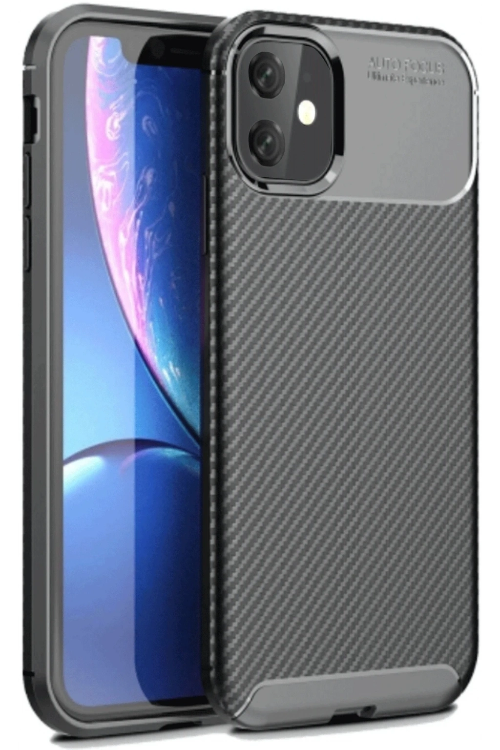 iPhone 11 Kılıf Auto Focus Karbon Kapak - Siyah