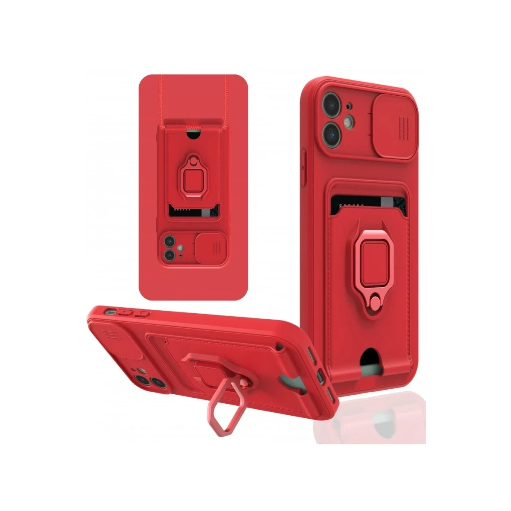 iPhone 11 Kılıf Zuma Kartvizitli Yüzüklü Silikon - Kırmızı