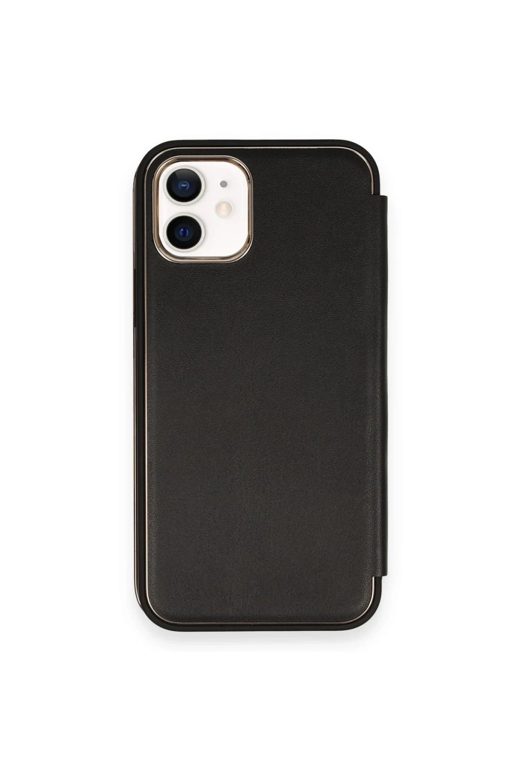 iPhone 12 Kılıf Dolpin Kapaklı - Siyah