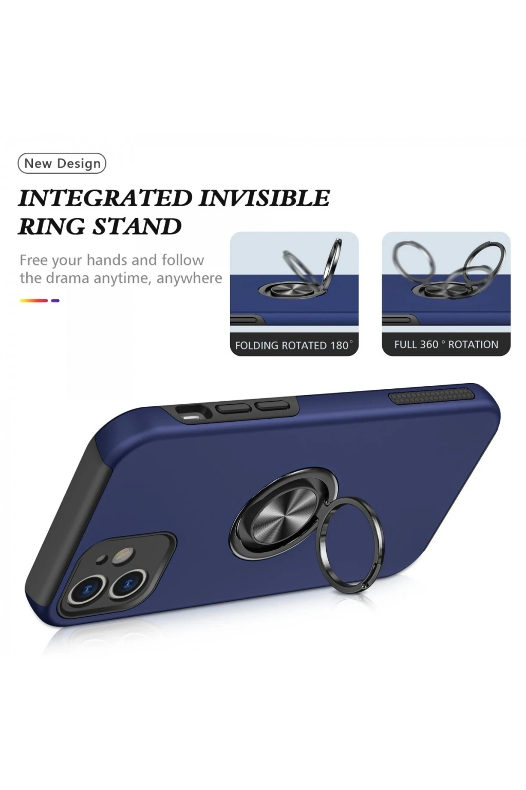 iPhone 12 Kılıf Elit Yüzüklü Kapak - Lacivert
