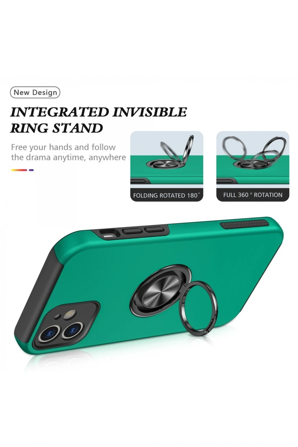 iPhone 12 Kılıf Elit Yüzüklü Kapak - Yeşil
