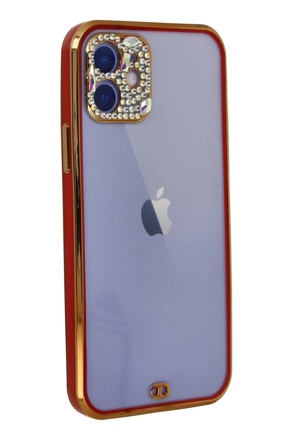 iPhone 12 Kılıf Liva Taşlı Silikon - Kırmızı