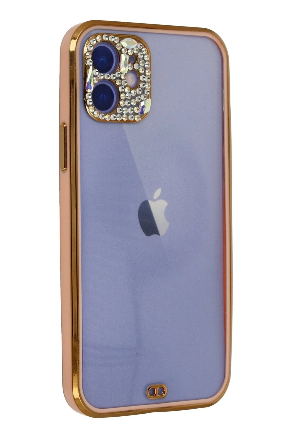 iPhone 12 Kılıf Liva Taşlı Silikon - Pembe