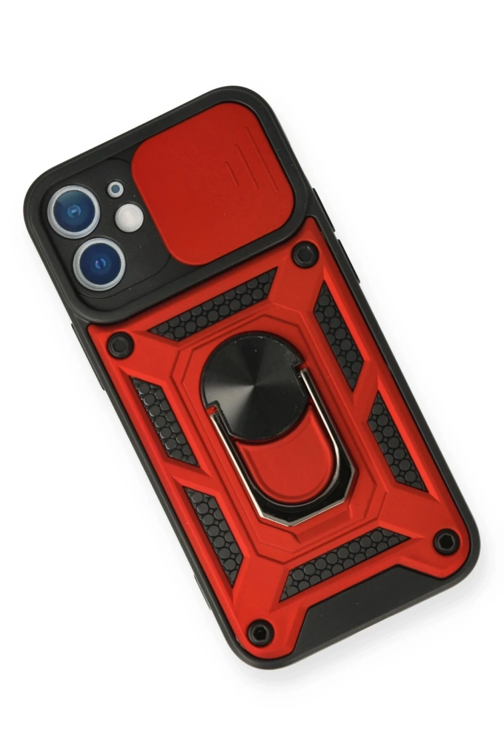 iPhone 12 Mini Kılıf Pars Lens Yüzüklü Silikon - Kırmızı