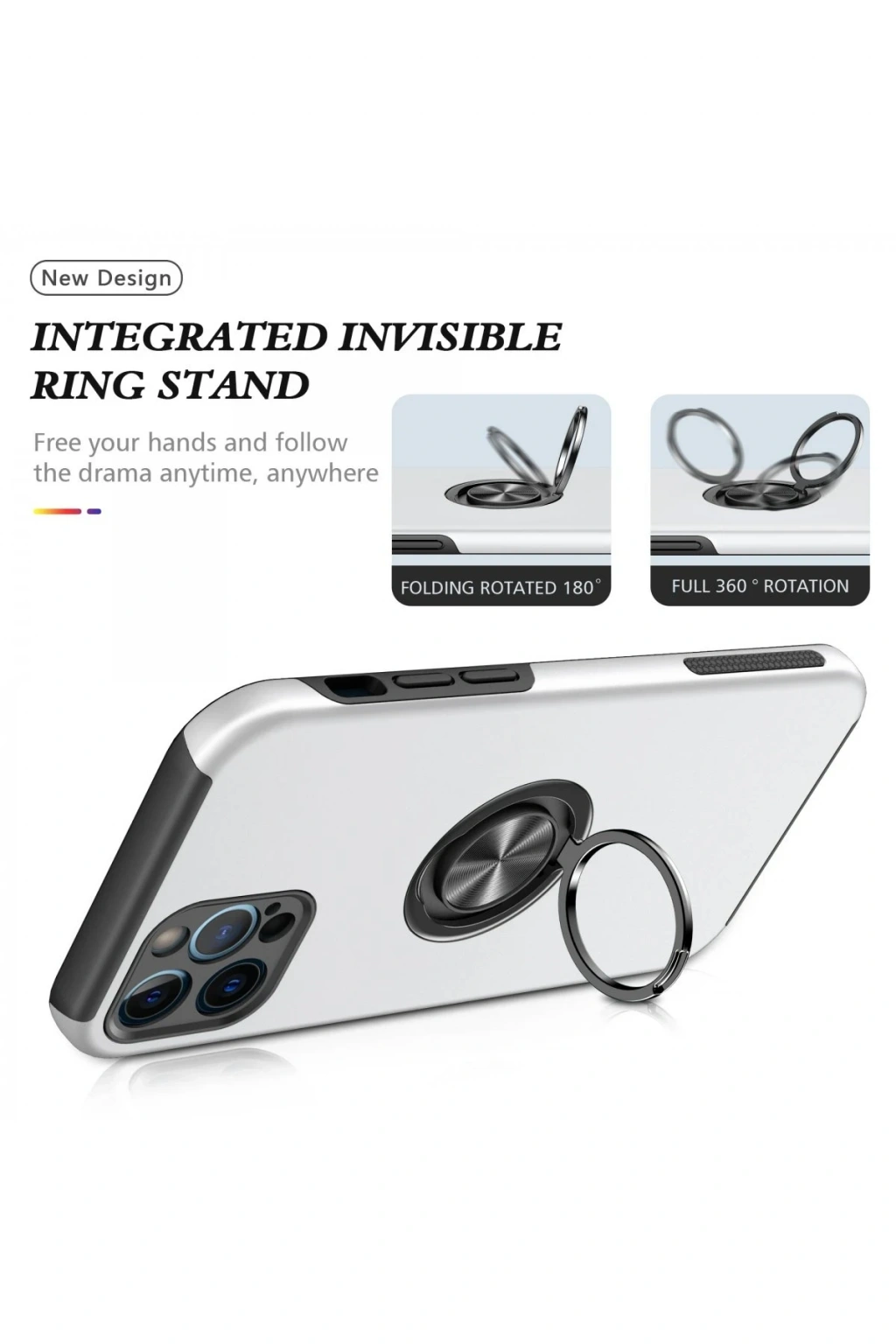 iPhone 12 Pro Kılıf Elit Yüzüklü Kapak - Gümüş