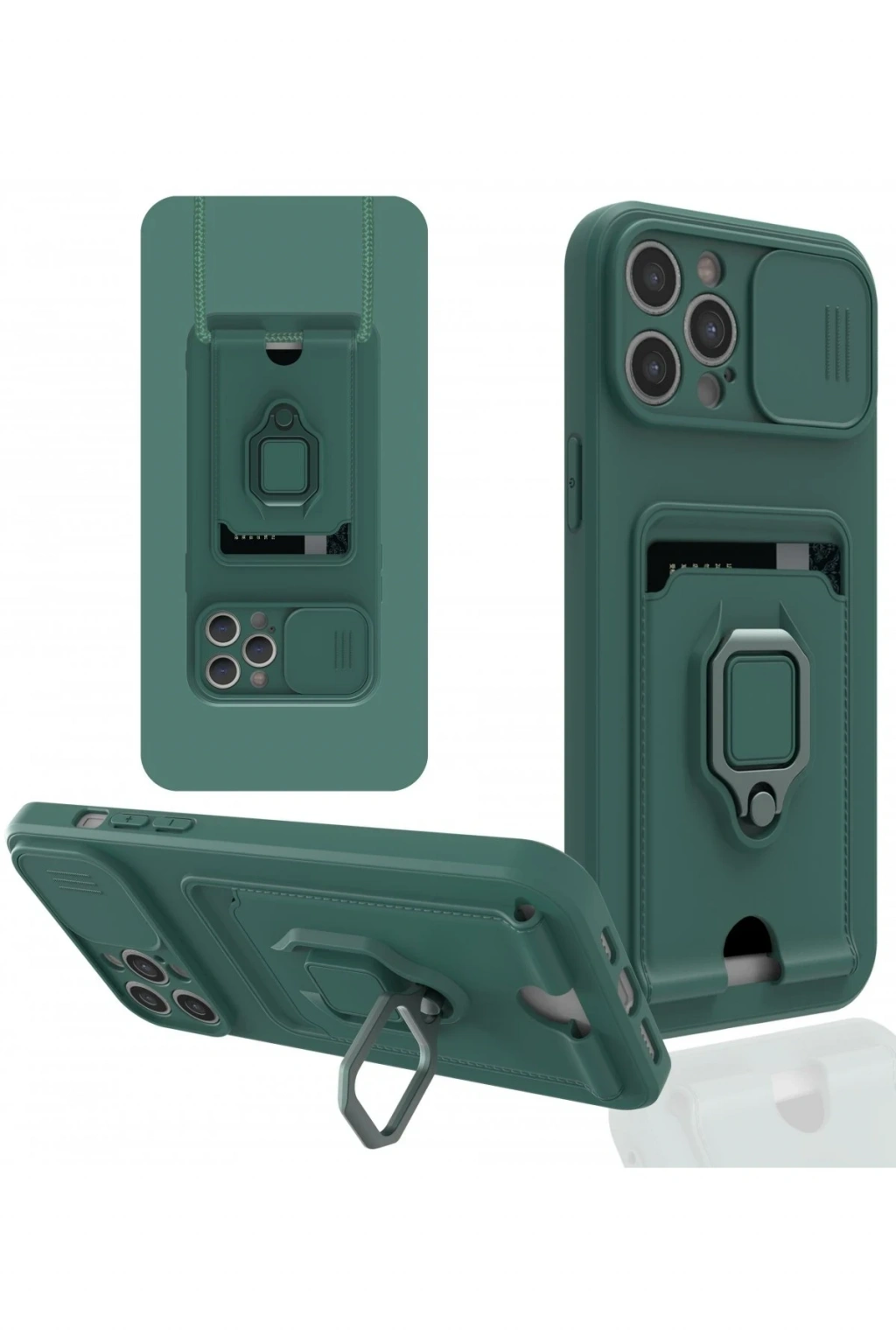 iPhone 12 Pro Kılıf Zuma Kartvizitli Yüzüklü Silikon - Yeşil